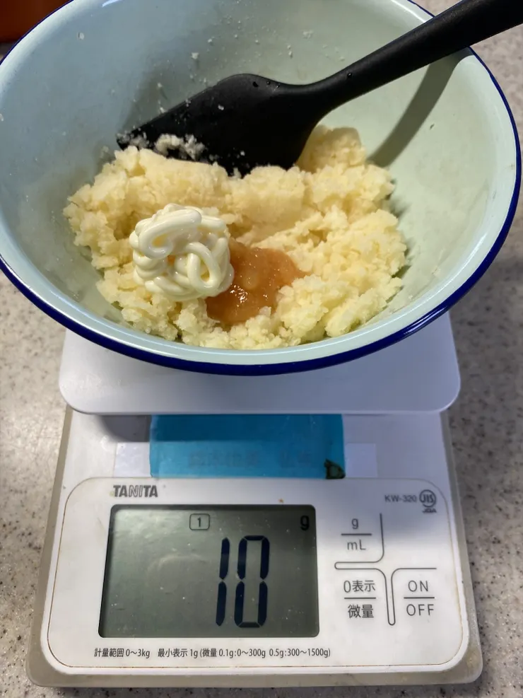 つぶしたじゃがいもにカツコつぶつぶ食感たらこ」とマヨネーズとコショウも少し。