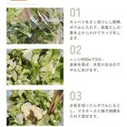 【1】キャベツをざく切りにし耐熱ボウルに入れて、和風だしの素を上からかけラップをします。
