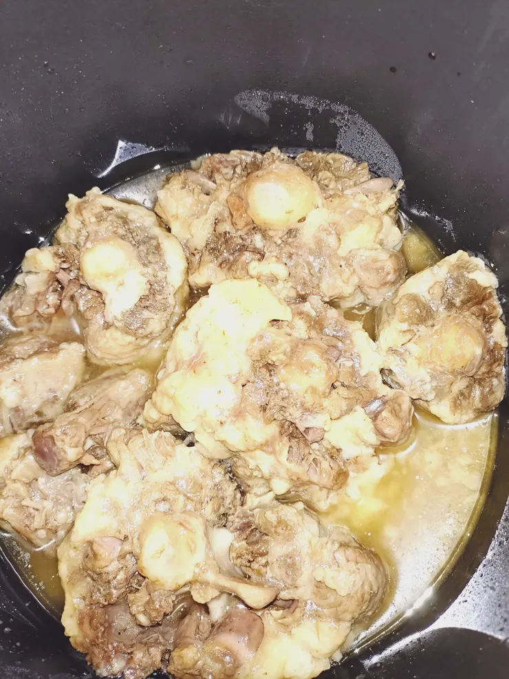 骨と肉の間に菜箸が入る位に柔らかくなったら調味料を入れて煮込んでいくと