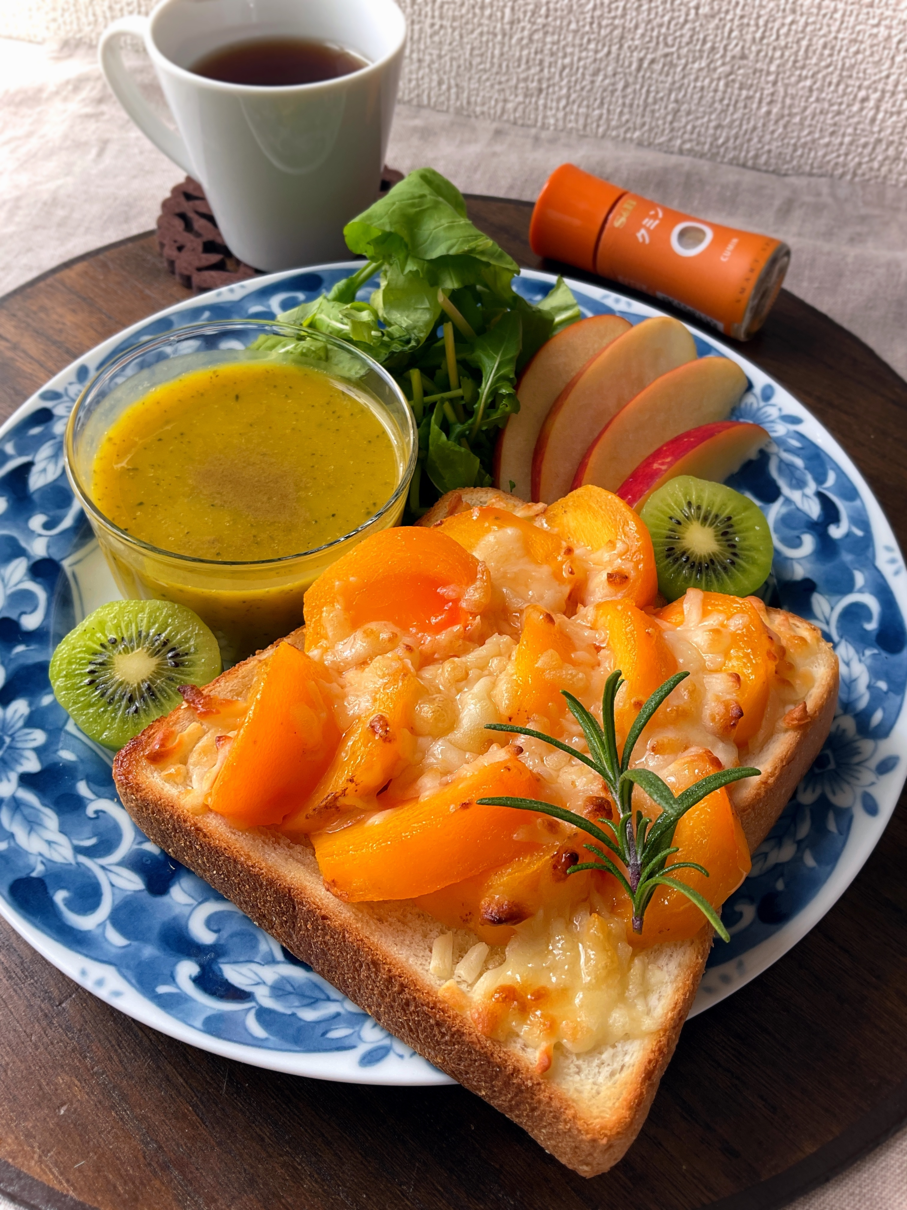 柿のトースト、甘じょっぱい味にシナモンとヒハツor