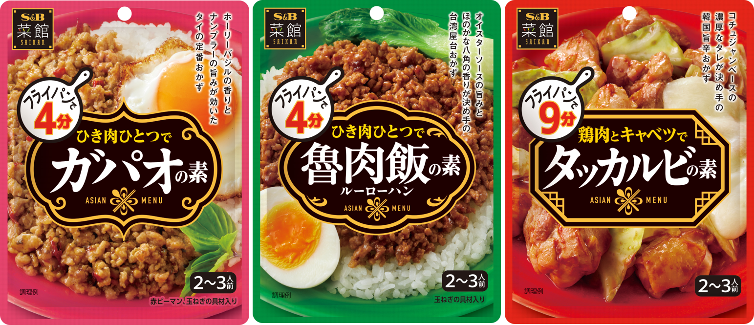本格アジアンメニューをお手軽に ひき肉や鶏肉などの身近な食材と炒めるだけで、本格的な味わいのアジアンメニューが楽しめるメニュー専用調味料です。