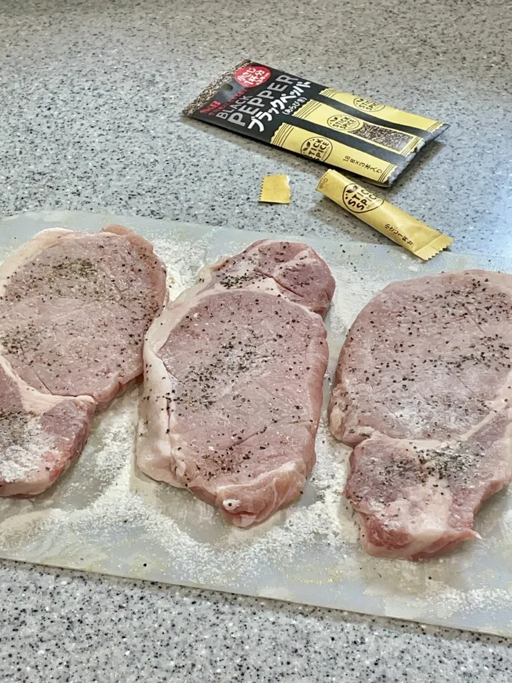 1本を豚ロース肉3枚に振り、
