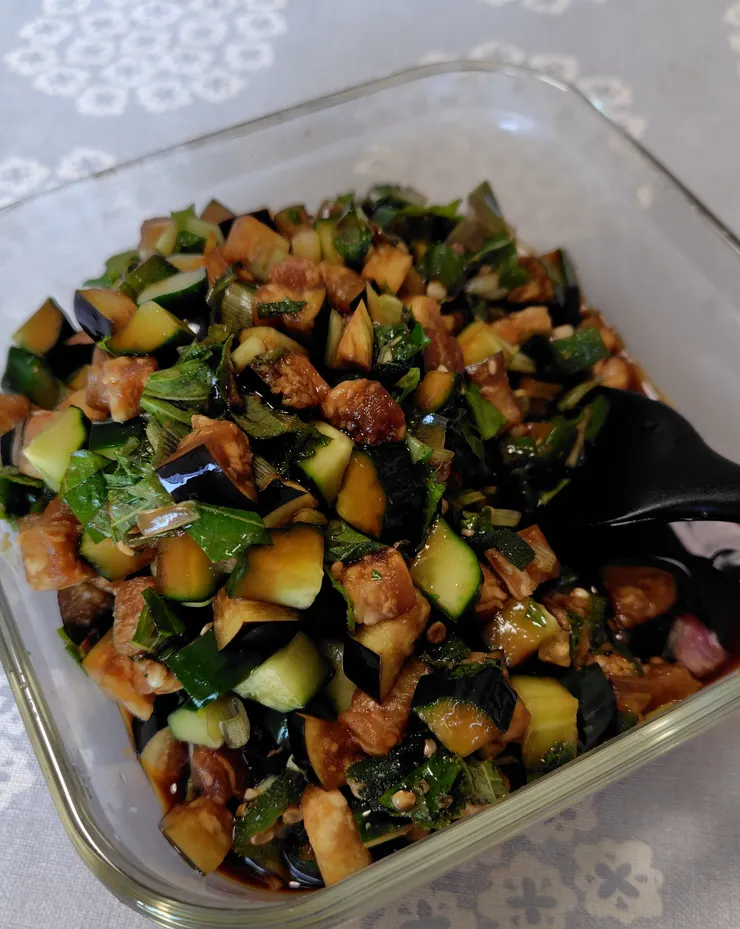全部同じくらいの小さめサイズのさいの目にカットして、器に入れて醤油をヒタヒタくらいに注ぐ。冷蔵庫で保存して、熱々ご飯に載せて食べる!素麺にも麺つゆがわりに!