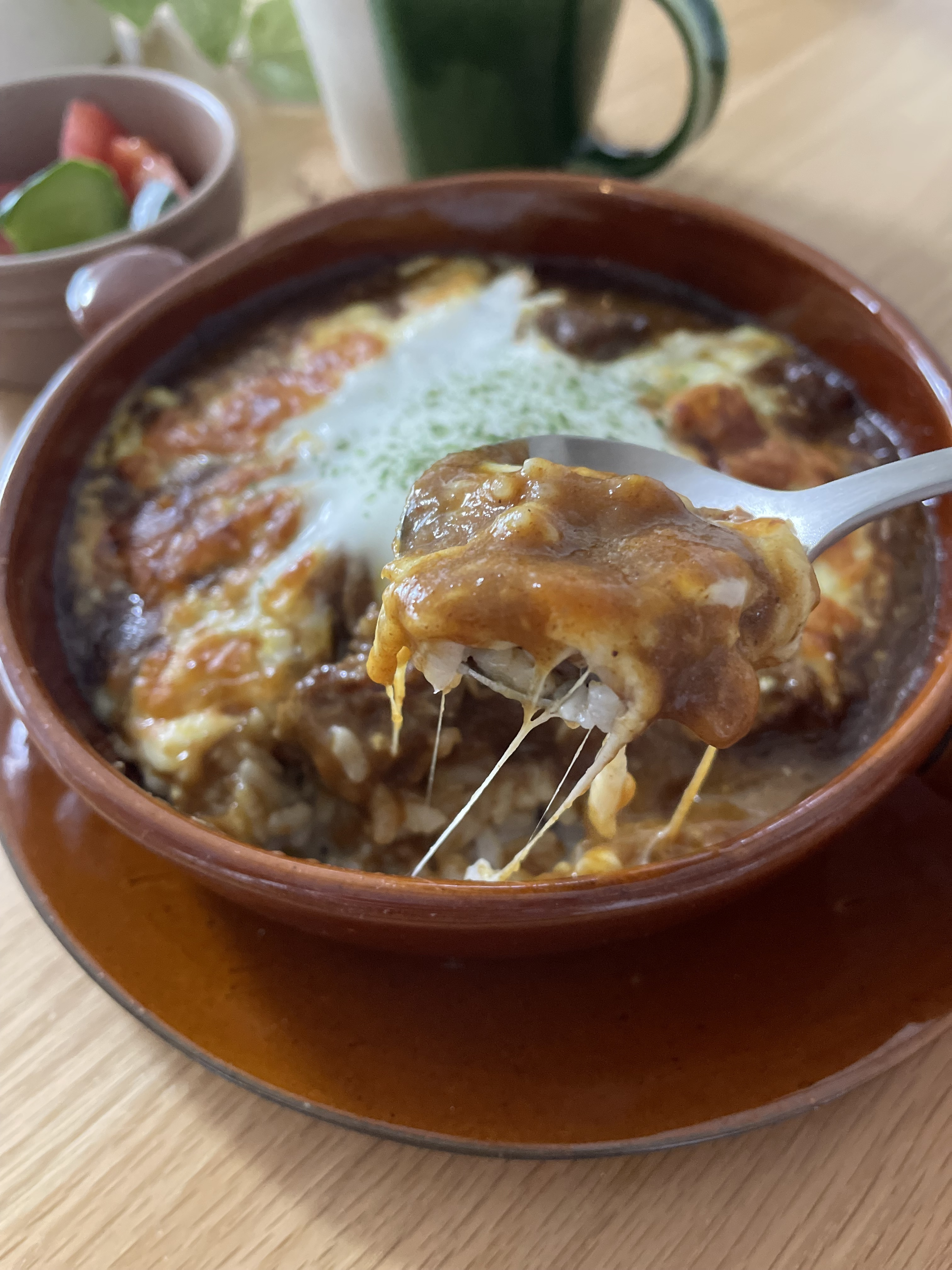 投稿を表示チーズがトロトロでおいしそう! 写真からカレーのスパイシーな香りが漂ってきますね。