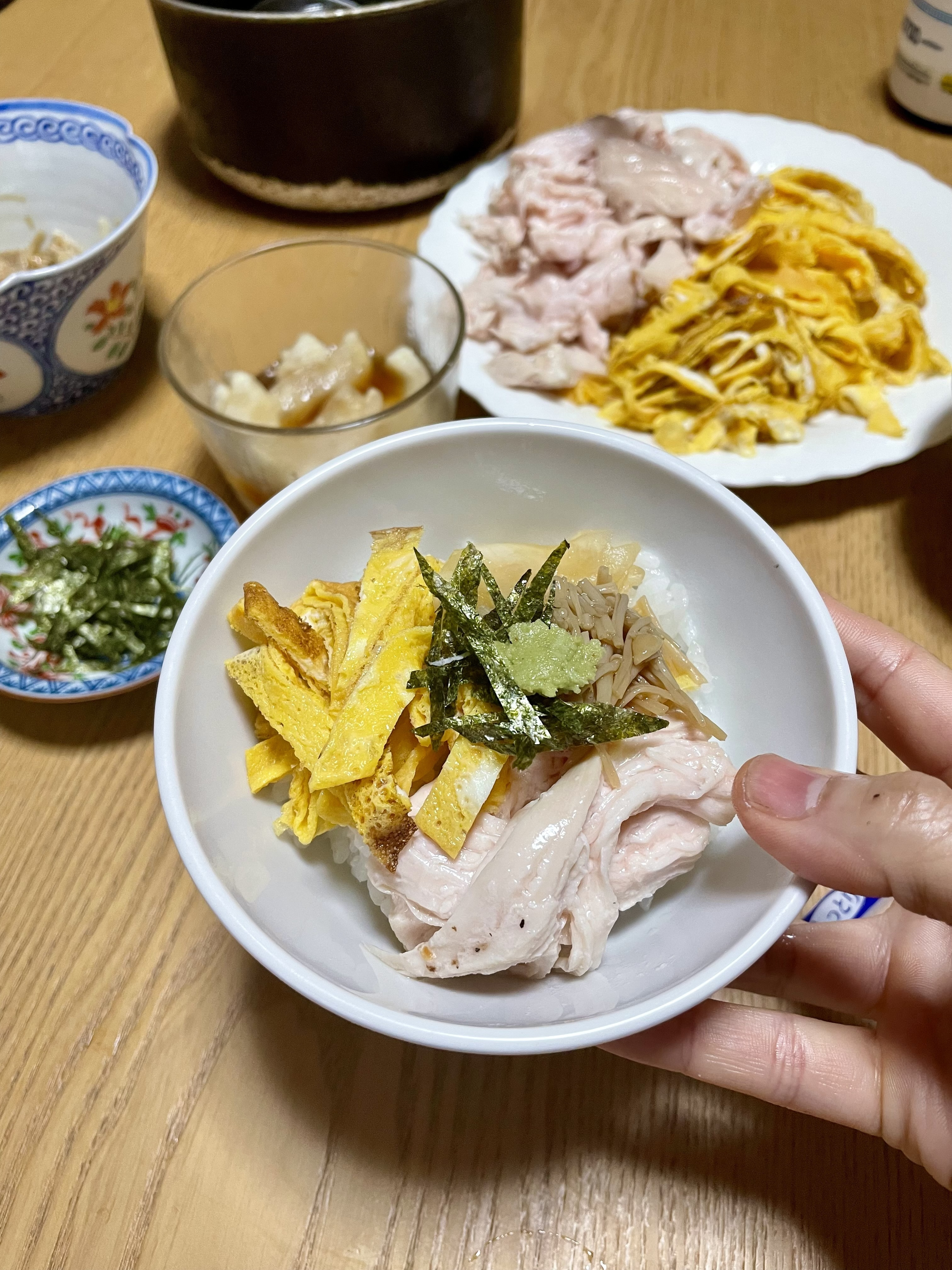 トップ > フォトレポート > 今日のごはん > 鶏飯のお昼ご飯 てぃも 2025/12/31 10:04 鶏飯のお昼ご飯 昨日はお昼ご飯に鶏飯(けいはん)を食べました✨ 九州の方の郷土料理だとか。 ご飯に茹でた鶏肉をさいたものと、お漬物と錦糸卵、なめたけをのせて、鶏の茹で汁をかけて食べます。 わさびと海苔も欠かせません🌟 本当はパパイヤのお漬物だそうですが、我が家は大根で。 サラサラ食べすぎちゃう美味しさです😊 いいね 共有する 共有する X facebook LINE リンクをコピー コメントする 1 件の返信 (新着順) ミュートしたユーザーの投稿です。 投稿を表示 てつ 2026/01/01 09:59 美味しそうですね! いいね 返信する