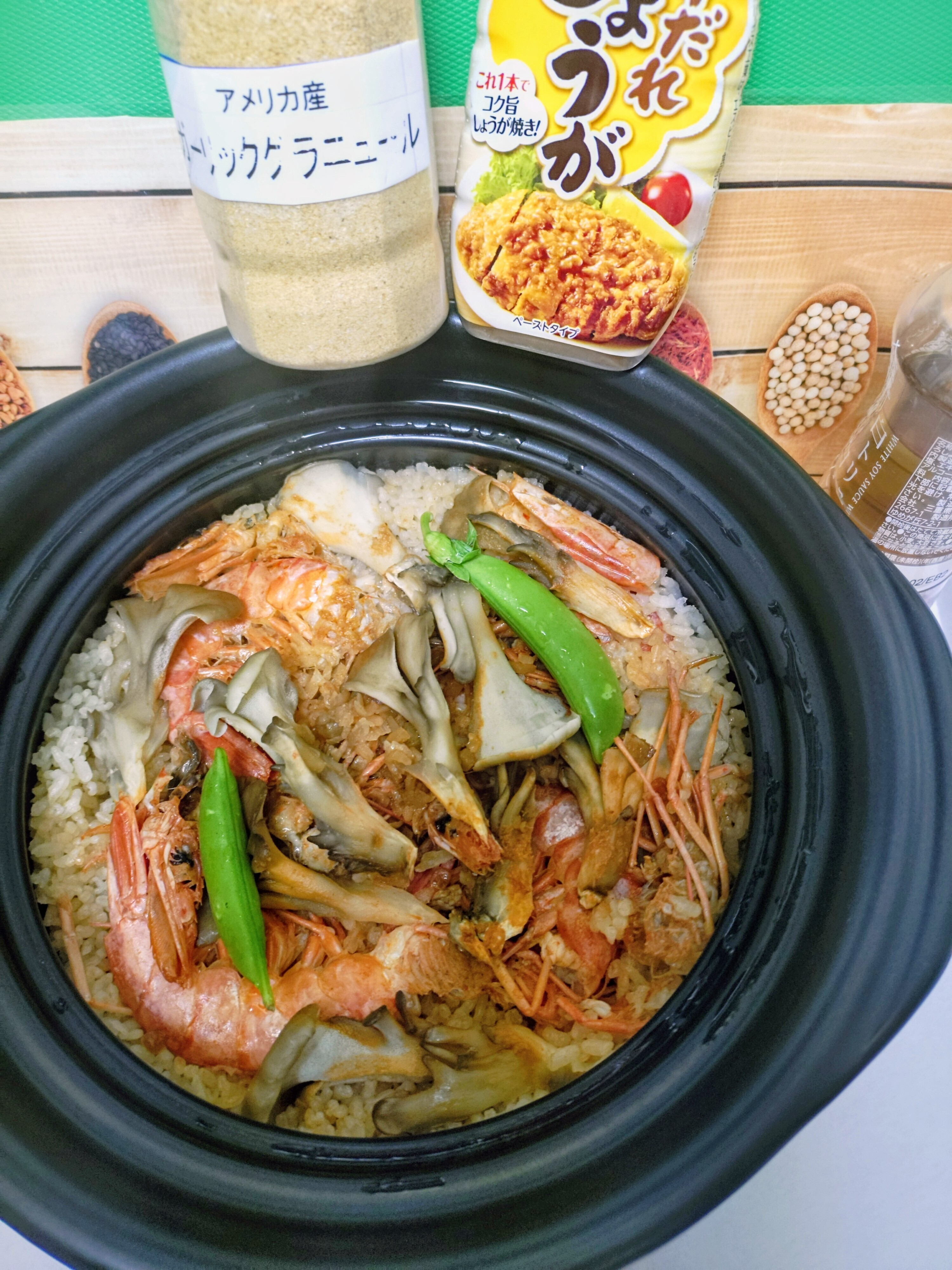 💠土鍋で大赤海老と舞茸の炊き込みご飯