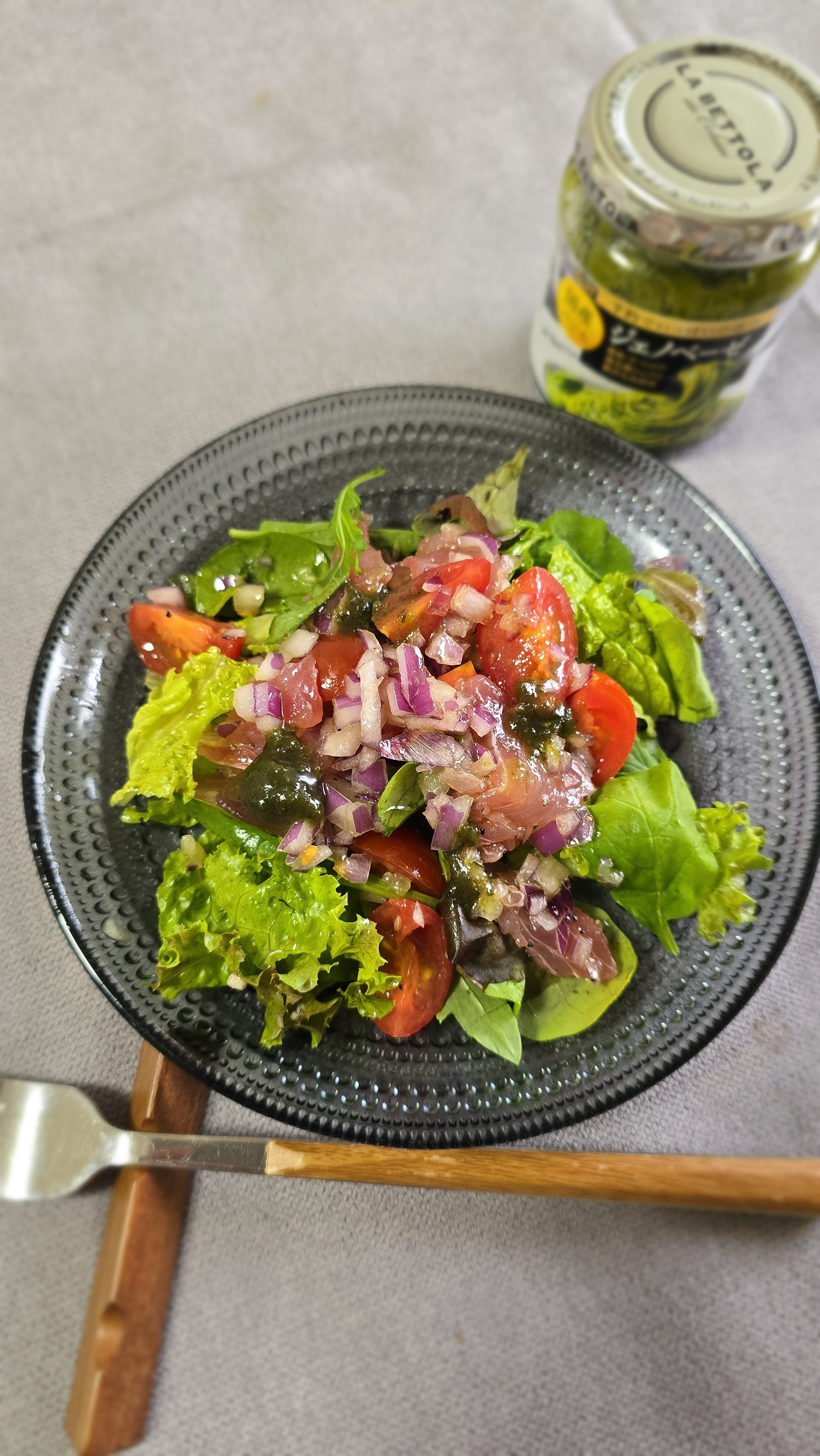 トップ > フォトレポート > スパイス&ハーブ > まぐろとバジルのジェノベーゼソース きょうか 2025/11/27 21:07 まぐろとバジルのジェノベーゼソース 特売で安くなってた、まぐろ🐟 オリーブオイルと塩 こしょう そして、ジェノベーゼソースを あえて、葉物野菜の上にのせました! ジェノベーゼソースは SB食品さんの瓶タイプのものを 使いました。 これが絶品で まぐろが生き返ります🤭 ハーブのチカラ、すごいですね! 簡単に作れるけど、そんな風に見えない? 美しい一皿の完成です!✨ 2周年コンテスト ジェノベーゼソース バジル まぐろ タルタル いいね 共有する 共有する X facebook LINE リンクをコピー コメントする 3 件の返信 (新着順) ミュートしたユーザーの投稿です。 投稿を表示 まーろん 2025/11/30 05:10 生ハムで作ってみたいです🥰 まぐろ、サーモン食べれないことないけど生が苦手なんです💦 いいね 返信する ミュートしたユーザーの投稿です。 投稿を表示 きょうか 2025/12/02 08:37 まーろん 生ハムも合うと思いますよ。 ぜひ、試してみてくださいね。 いいね 返信する ミュートしたユーザーの投稿です。 投稿を表示 SPICE&HERB COMMUNITY事務局 2025/11/28 11:54 きょうかさん、こんにちは! これは御馳走ですね👀✨ 予約でいっぱいの店のジェノベーゼのご活用ありがとうございます♪ ハーブはお魚の臭いを抑えて、より味わいを美味しく引きあげてくれますよね! いいね 返信する ミュートしたユーザーの投稿です。 投稿を表示 きょうか 2025/12/02 08:39 SPICE&HERB COMMUNITY事務局 ジェノベーゼソース、 めちゃくちゃ助かりますよ😂 そうですよね、ハーブは魚の臭みも おさえてくれる強い味方ですよね! いいね 返信する ミュートしたユーザーの投稿です。 投稿を表示 akatonbo 2025/11/28 09:00 きょうか ジェノベーゼソースはいいですね。 いいね 返信する ミュートしたユーザーの投稿です。 投稿を表示 きょうか 2025/12/02 08:39 akatonbo コメントありがとうございます♥️ ぜひ、お試しくださいね🤗 いいね 返信する ミュートしたユーザーの投稿です。 投稿を表示 akatonbo 2025/12/02 10:00 きょうか ありがとうございます。 いいね 返信する