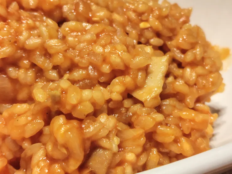 あまり混ぜると米の粘りが出るので、あまり触らないのが良いみたいです。出来上がりは、アルデンテが良かったのですが、少し芯が残ってしまいました。