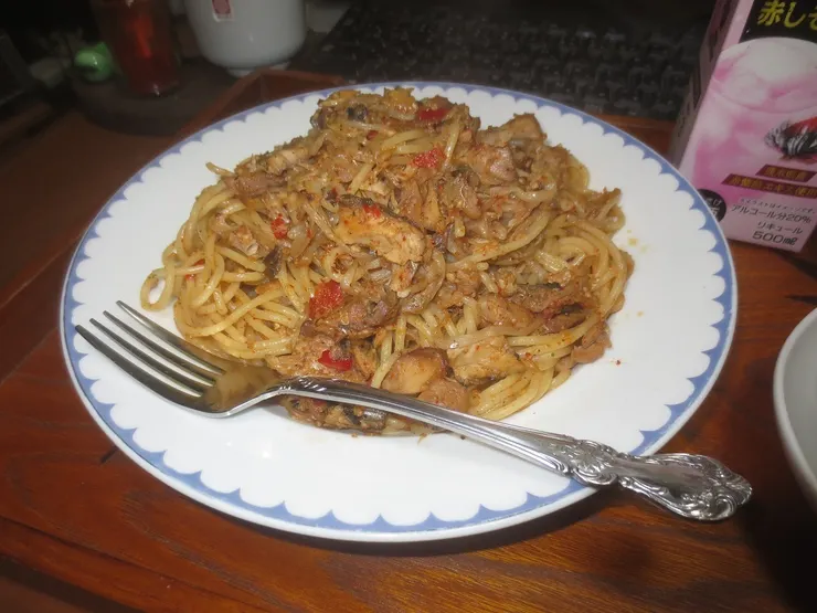 シーズニングアヒージョを使った鯖缶パスタ、とっても美味しそうです♪