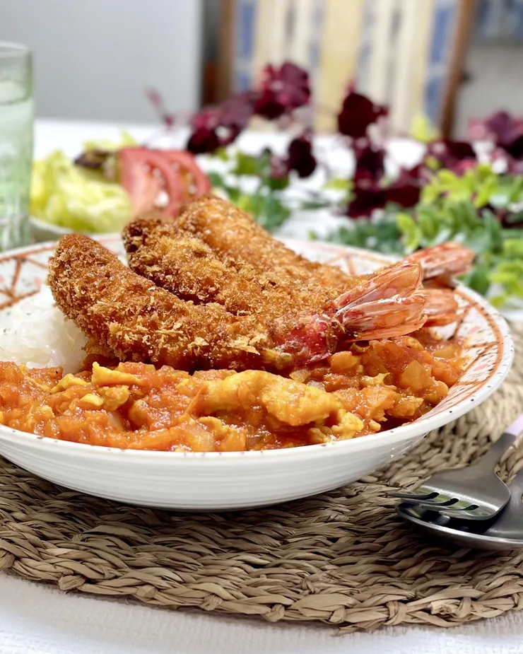 ポークカレー×エビフライ、大人も子供も大喜びの逸品ですね👀✨