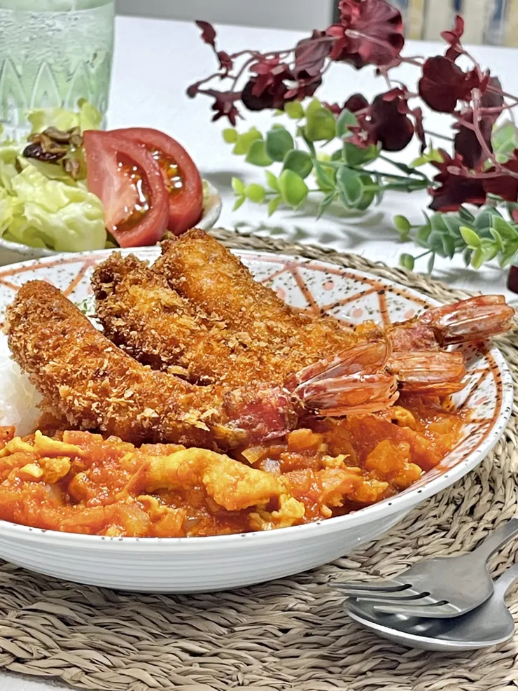 ポークカレー×エビフライ、大人も子供も大喜びの逸品ですね👀✨