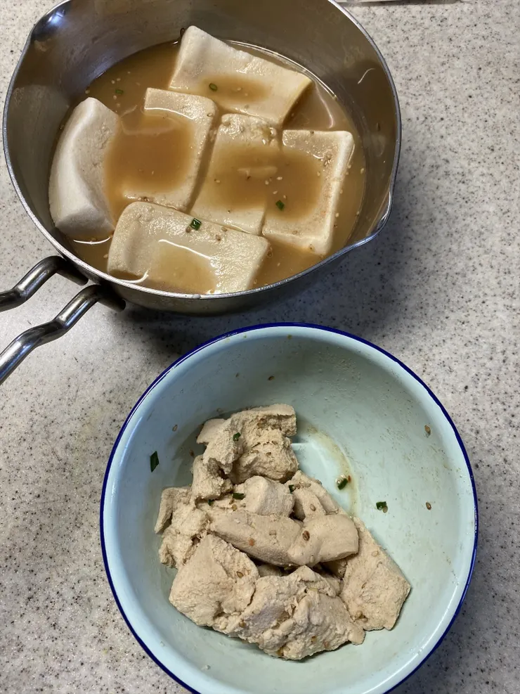 これは「アレを作るしかないな…」と大好きなこうや豆腐の唐揚げ(いや、ザンギだな)コリアンダー醤油風味を作りました。