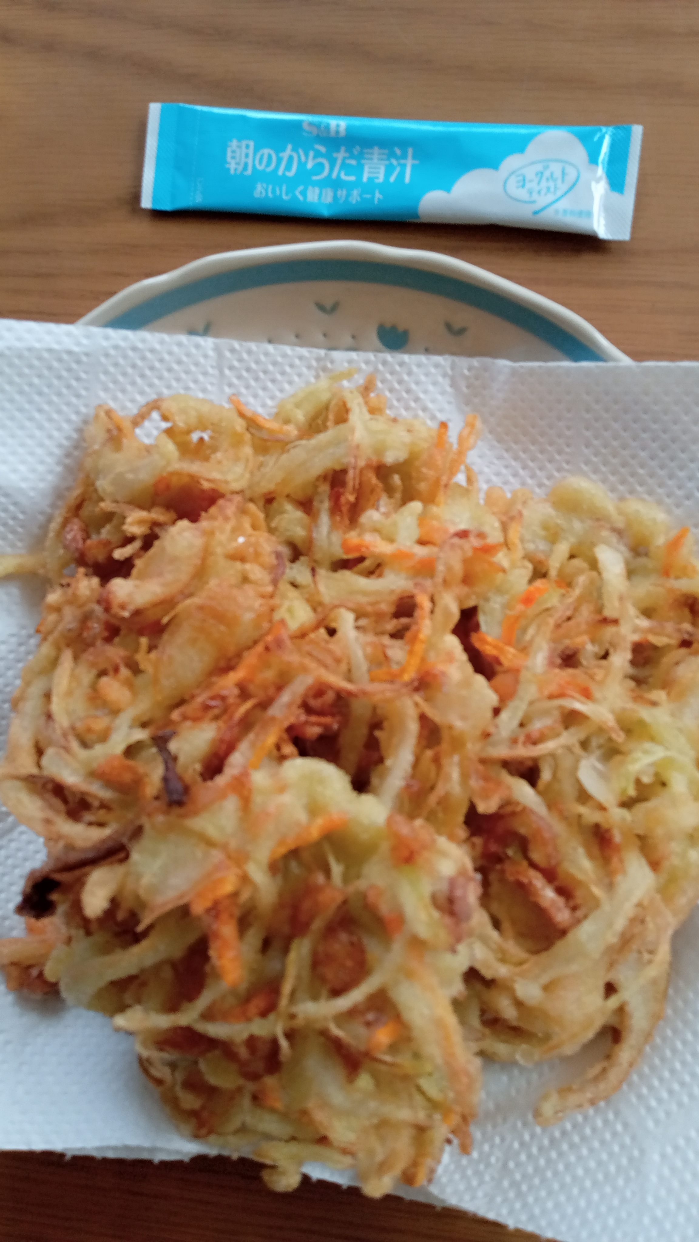 いつものかき揚げに比べて、少しさっぱりとした感じになりました。