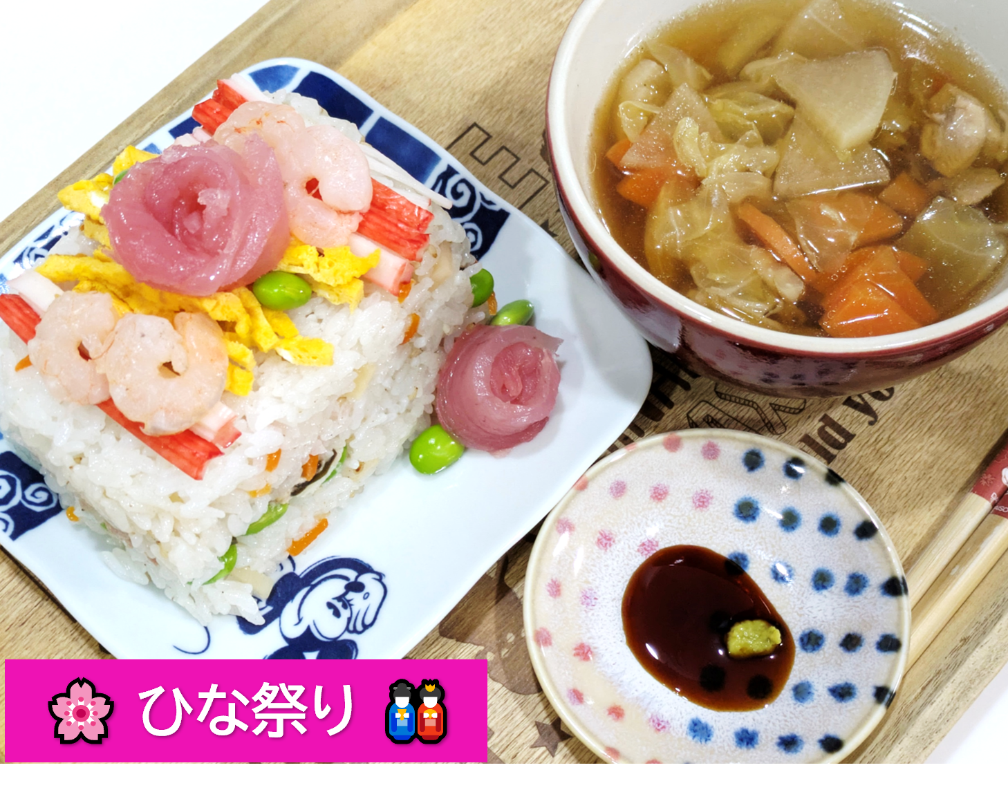 トップ > フォトレポート > 今日のごはん > 🌸ひな祭り🎎 izuみん♡ 2026/03/04 15:32 🌸ひな祭り🎎 昨日はひな祭りでしたねっ🎎 我が家でもちょっぴり可愛らしくした🌸 ちらし寿司を食べました(*'▽') ちらし寿司を押しずし風にして&マグロのお刺身をバラのようにして飾りました🌹 なんとか見えるかなぁ?? イメージとしてはケーキのようにしたかったのですが…🍰 大きなサイズは男性陣・小さなサイズは女性陣と2サイズ作りましたよぉ~ デザートは市販の牛乳を混ぜて冷やすだけの杏仁豆腐にいちごを添えて食べました🍓 S&B生わさび いいね 共有する 共有する X facebook LINE リンクをコピー コメントする 7 件の返信 (新着順) ミュートしたユーザーの投稿です。 投稿を表示 おさかな公爵 2026/03/05 10:41 izuみん様 ちらし寿司を 押し寿司にするという 柔軟な発想をされまして 素晴らしいですわ。 春を彷彿させます 淡い色彩が まるで マリー・ローランサン の絵画🖼️のやう。 また まぐろさんの薔薇🌹は C○A○E○ ○メリア みたい 素敵。 おさかな公爵様 お気に入り 薔薇🌹。 いいね 返信する ミュートしたユーザーの投稿です。 投稿を表示 izuみん♡ 2026/03/05 16:42 おさかな公爵 おさかな公爵さん いつもコメントありがとうございます! ユーモアあふれる表現を楽しく読んでいます おさかな公爵さんのお気に入りのバラの模様も可愛らしいですね🌹 和も洋も両方感じられ素敵です✨ いいね 返信する ミュートしたユーザーの投稿です。 投稿を表示 Tnmr 2026/03/05 08:39 創意工夫に溢れていて素敵です! いいね 返信する ミュートしたユーザーの投稿です。 投稿を表示 izuみん♡ 2026/03/05 16:39 Tnmr コメントありがとうございまーす♪ 娘も喜んでくれたので 嬉しかったです(´ω`) いいね 返信する ミュートしたユーザーの投稿です。 投稿を表示 ミック 2026/03/05 07:46 美味しそうなちらし寿司ですね 押しすしのようなキレイな盛り付け 鮪のバラの花がまたかわいらしいですね ケーキのようでおいしそうです~ いいね 返信する ミュートしたユーザーの投稿です。 投稿を表示 izuみん♡ 2026/03/05 16:38 ミック ミックさん 嬉しいコメントありがとうございます♡ ひな祭りなので⇒ピンクやイエローといった華やかな色でまとめてく ちょっぴりデコレーションに力を入れてみました<(`^´)> ケーキのようっ…と言っていただけて嬉しいです(作る時にイメージしました)🍰 いいね 返信する ミュートしたユーザーの投稿です。 投稿を表示 Yuki 2026/03/04 20:07 ちらし寿司おいしそうですね。男性陣用、女性陣用 助かります。 いいね 返信する ミュートしたユーザーの投稿です。 投稿を表示 izuみん♡ 2026/03/05 07:47 Yuki コメントありがとうございます(*'▽') ちなみに… 押しちらし寿司の型は牛乳パックで作りました🐄 男性陣はそのまま1本 女性陣は1/2本で作成しました✄ いいね 返信する ミュートしたユーザーの投稿です。 投稿を表示 しーちゃん 2026/03/04 17:45 可愛いちらし寿司💕 マグロのバラ素敵💓 いいね 返信する ミュートしたユーザーの投稿です。 投稿を表示 izuみん♡ 2026/03/04 17:47 しーちゃん キャー!嬉しすぎるコメント✨ ありがとうございまーす♡ バラに見えてホッです(´▽`) いいね 返信する ミュートしたユーザーの投稿です。 投稿を表示 ざくちゃん 2026/03/04 16:24 美味しいお花が咲いた ステキでキレイな押し寿司ですね🌼 いいね 返信する ミュートしたユーザーの投稿です。 投稿を表示 izuみん♡ 2026/03/04 17:42 ざくちゃん 嬉しいコメントありがとうございまーすヽ(^o^)丿 お花に見えて嬉しいです♡ いいね 返信する ミュートしたユーザーの投稿です。 投稿を表示 SPICE&HERB COMMUNITY事務局 2026/03/04 16:23 izuみん♡さん、こんにちは! とっても美味しそうなちらし寿司ですね👀✨ 素敵な一日のおすそ分け、ありがとうございます♪ いいね 返信する
