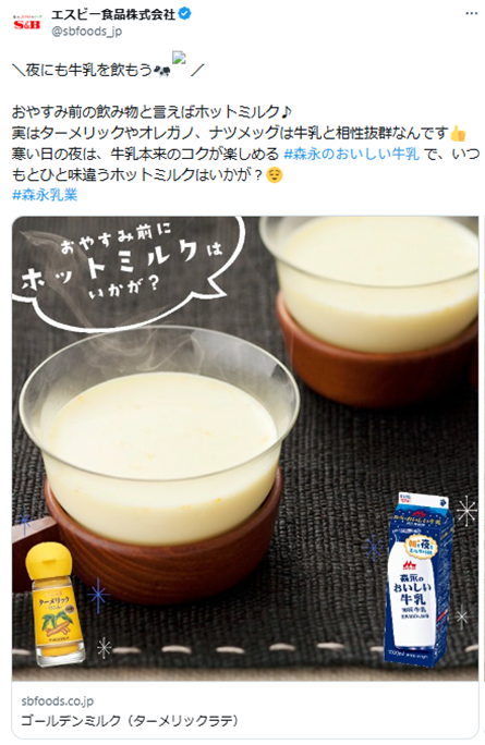 エスビー食品公式Xでは森永乳業と連動し、その時期におすすめの牛乳たっぷりレシピをご紹介しています。