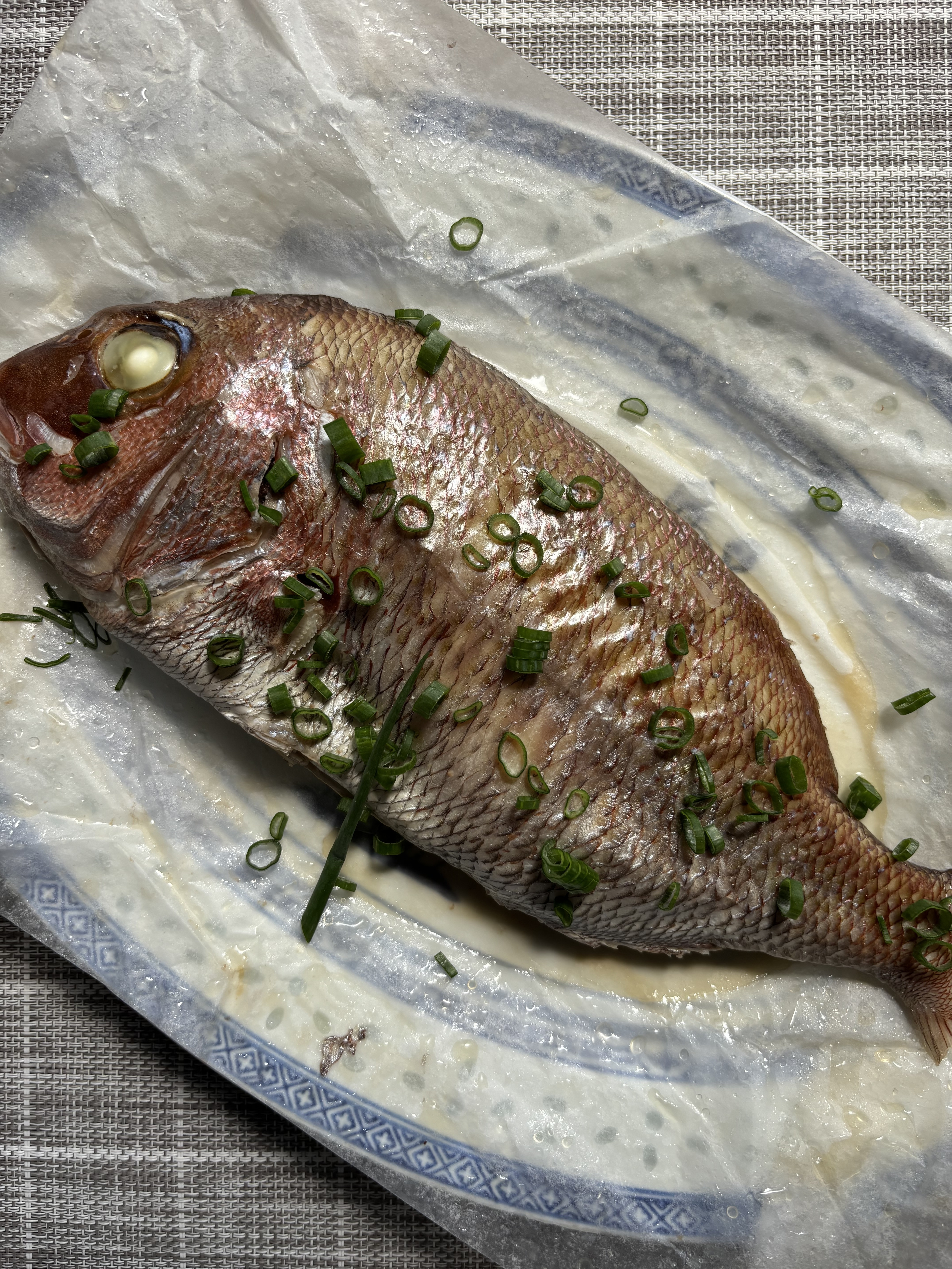 トップ > フォトレポート > おすすめレシピ > 鯛の塩焼き tochi 2026/03/29 05:43 鯛の塩焼き 鯛のヒレを全て切り取って内蔵を取ったらウロコを取り除く。内臓を取った部分と全体を水洗いしてキッチンペーパーで押さえて水気を取る。鯛全体に粗塩を振ってクッキングシートで包む。クッキングシートの上から二重にアルミホイルで包む。そのまま炭火で両面を約40分くらいずつ。塩の旨味が全体に広がり身はしっとり、ふんわり仕上がります。 いいね 共有する 共有する X facebook LINE リンクをコピー コメントする 1 件の返信 (新着順) ミュートしたユーザーの投稿です。 投稿を表示 SPICE&HERB COMMUNITY事務局 2026/04/01 18:05 tochiさん、こんにちは! これは豪快ですね👀✨ とっても美味しそうです♪ いいね 返信する ミュートしたユーザーの投稿です。 投稿を表示 tochi 2026/04/03 12:25 SPICE&HERB COMMUNITY事務局 大きく立派な鯛だったんで、じっくり塩焼きでいただきました^_^ いいね 返信する