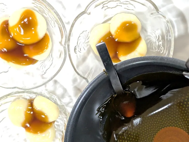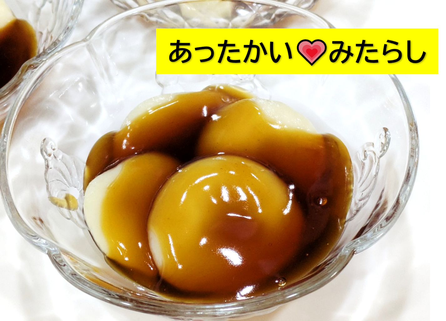 今回は寒い冬なので、みたらしのタレを冷まさずに→あったかい状態のままで白玉にかけ食べてみました🍡 うん♡美味しかったです( *´艸`)