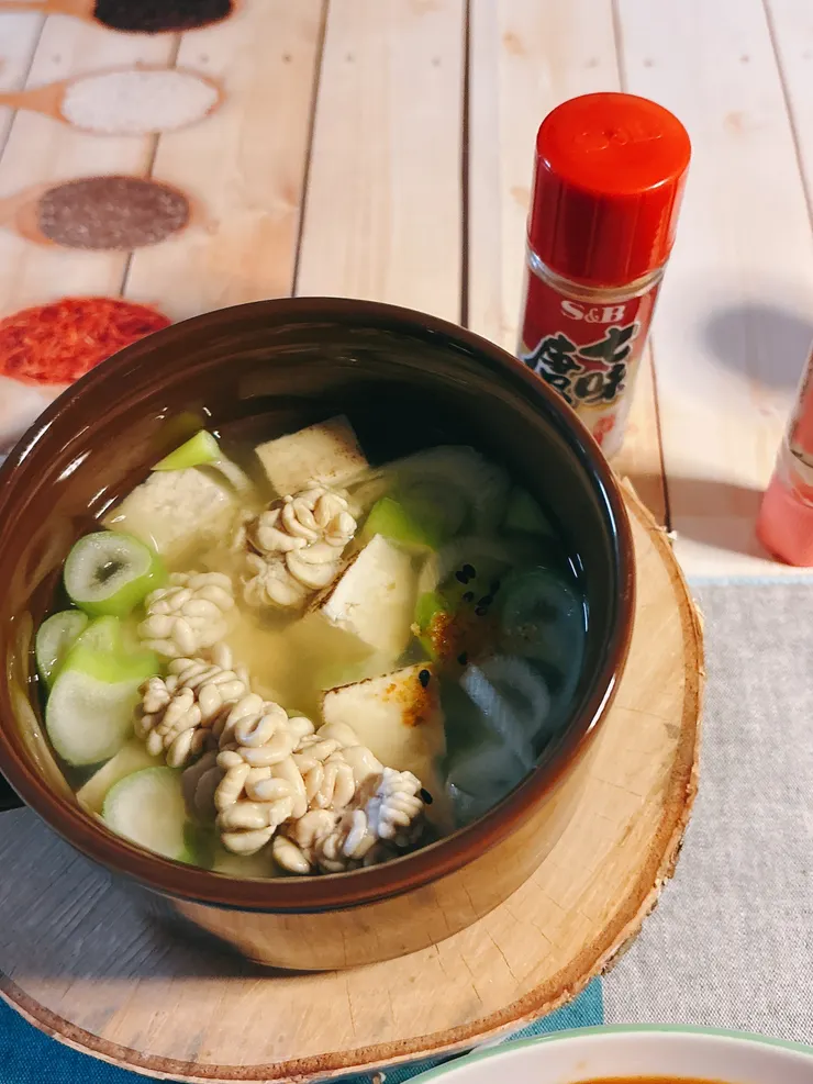 白子のお味噌汁には「七味唐からし」ぱらり。