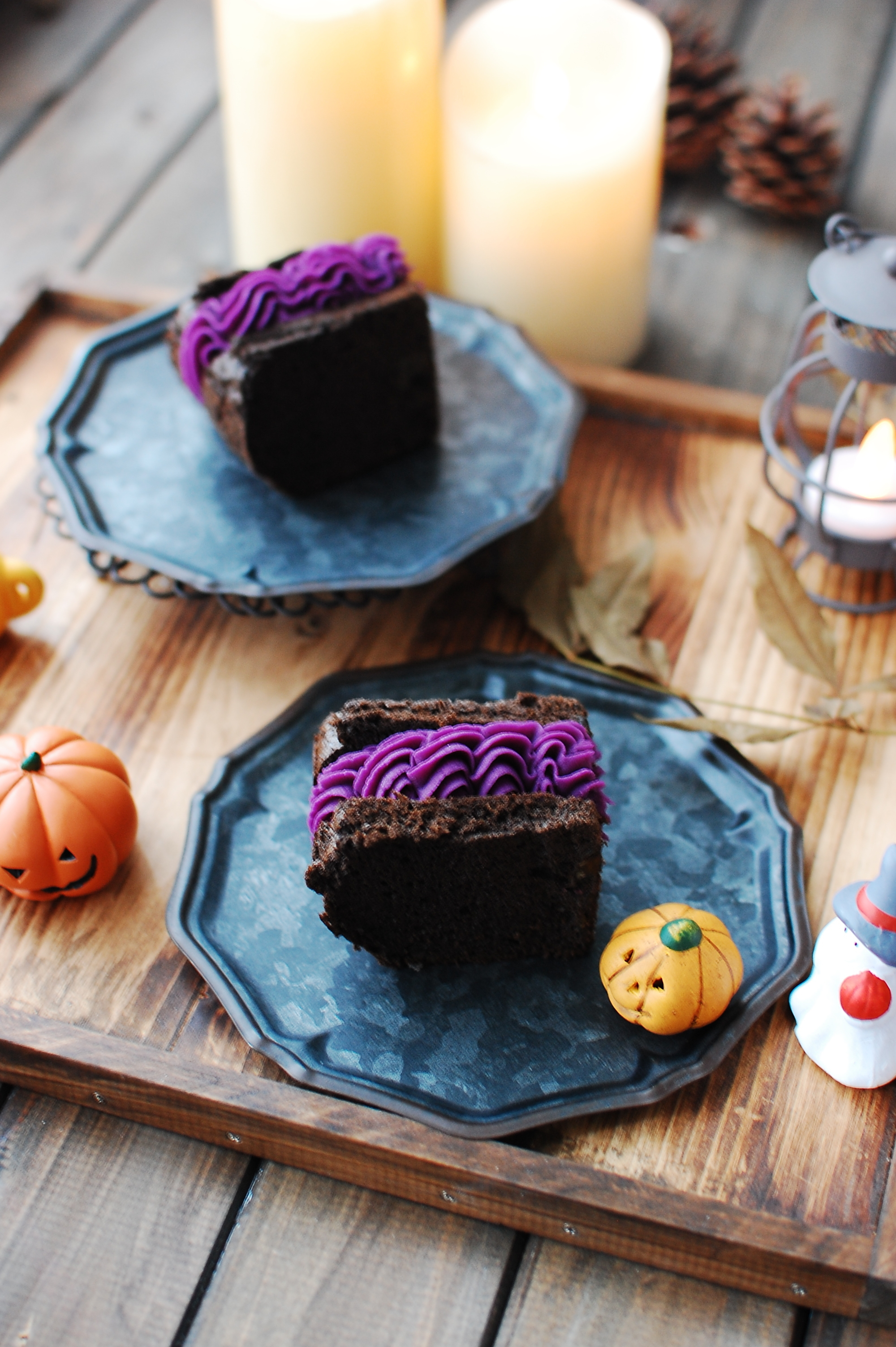 投稿を表示美味しそうなチョコレートシフォンケーキに紫芋クリームですネ✨️