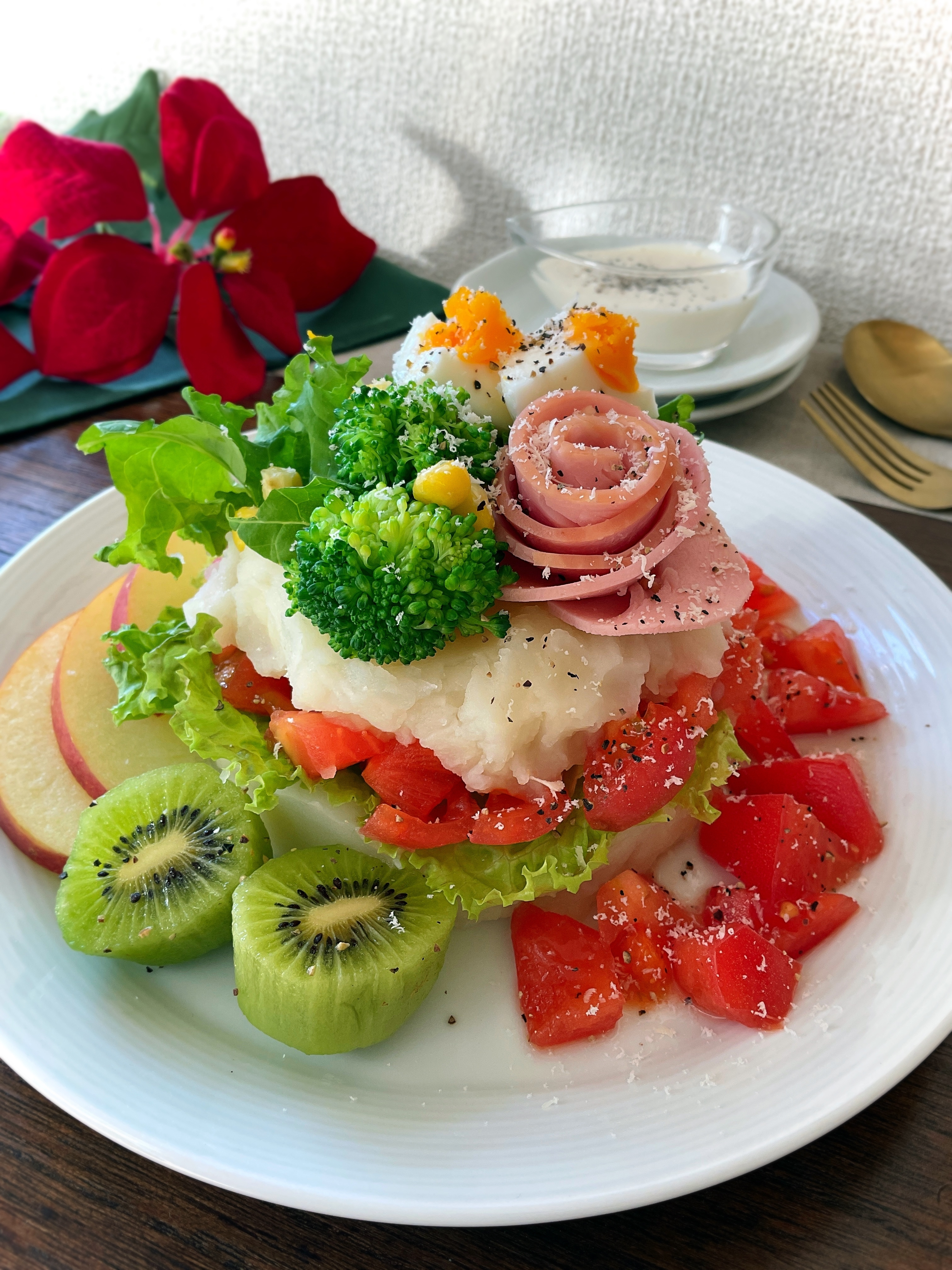 ハムの薔薇もゴージャスで雰囲気が出ててステキ〜♡
