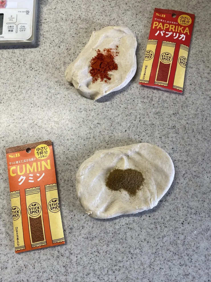 今回はパプリカとクミンにしたけどパプリカは色だけで味にパンチ🤜がなかったわぁ。