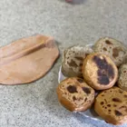 100均の綿棒、もしくはラップの芯捨てる前の硬いやつで丸く伸ばし直径13㎝くらいにする。「おやき」にする時はなんでもいいのでおかずを包む。だいたい25gくらい入る。