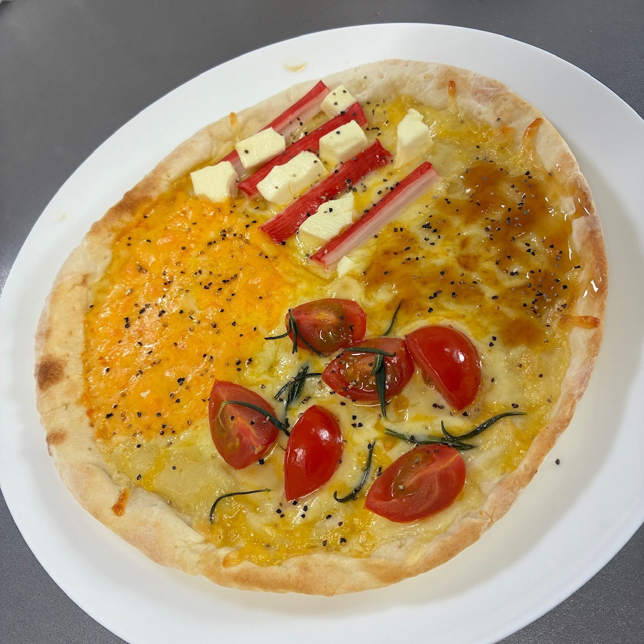 トップ > フォトレポート > スパイス&ハーブ > 市販のピザアレンジ niko 2026/02/06 19:45 市販のピザアレンジ 市販のピザを4種のピザにアレンジ☆ ・追いチェダーチーズ ・かにかま&クリームチーズ ・追いチーズ&はちみつ ・トマト&ローズマリー(我が家育ち♡) 仕上げにたっぷりブラックペッパーでおいしくいただきました♪ ごちそうさまでした。 ローズマリー ローズマリー ブラックペッパー ピザアレンジ ハーブ栽培 いいね 共有する 共有する X facebook LINE リンクをコピー ローズマリー スキッとした独特の強い香りをもち、羊肉、豚肉、イワシやサバなどクセの強い素材の臭み消しに役立つ一方、鶏肉、じゃがいもなど淡白な素材の風味づけにも活躍します。トマトやニンニクなどとも好相性。パンや菓子、ドリンクの香りのアクセントとしても用いられます。フレッシュのローズマリーは、オイルやビネガーに漬け込み、香りを移して楽しむのもおすすめです。 詳細を見る コメントする 2 件の返信 (新着順) ミュートしたユーザーの投稿です。 投稿を表示 SPICE&HERB COMMUNITY事務局 2026/02/09 09:40 nikoさん、こんにちは! 4種の味わい、とっても素敵です👀✨ 食べる順番を悩んでしまいますね♪ いいね 返信する ミュートしたユーザーの投稿です。 投稿を表示 みきママ 2026/02/07 23:12 これはすごいいいアイデアですね。 私も真似します(#^^#) いいね 返信する