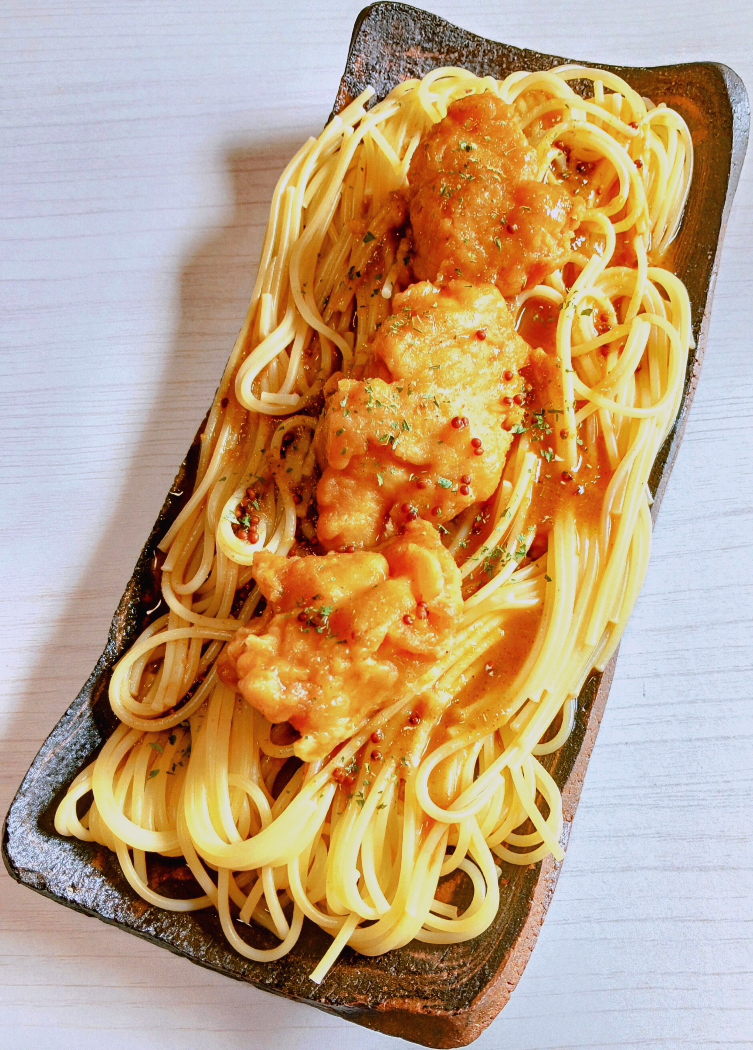投稿を表示マスタードや他いろいろなスパイスが効いたスパイスカレーをスパゲッティのソースにしたら美味しそう✨️