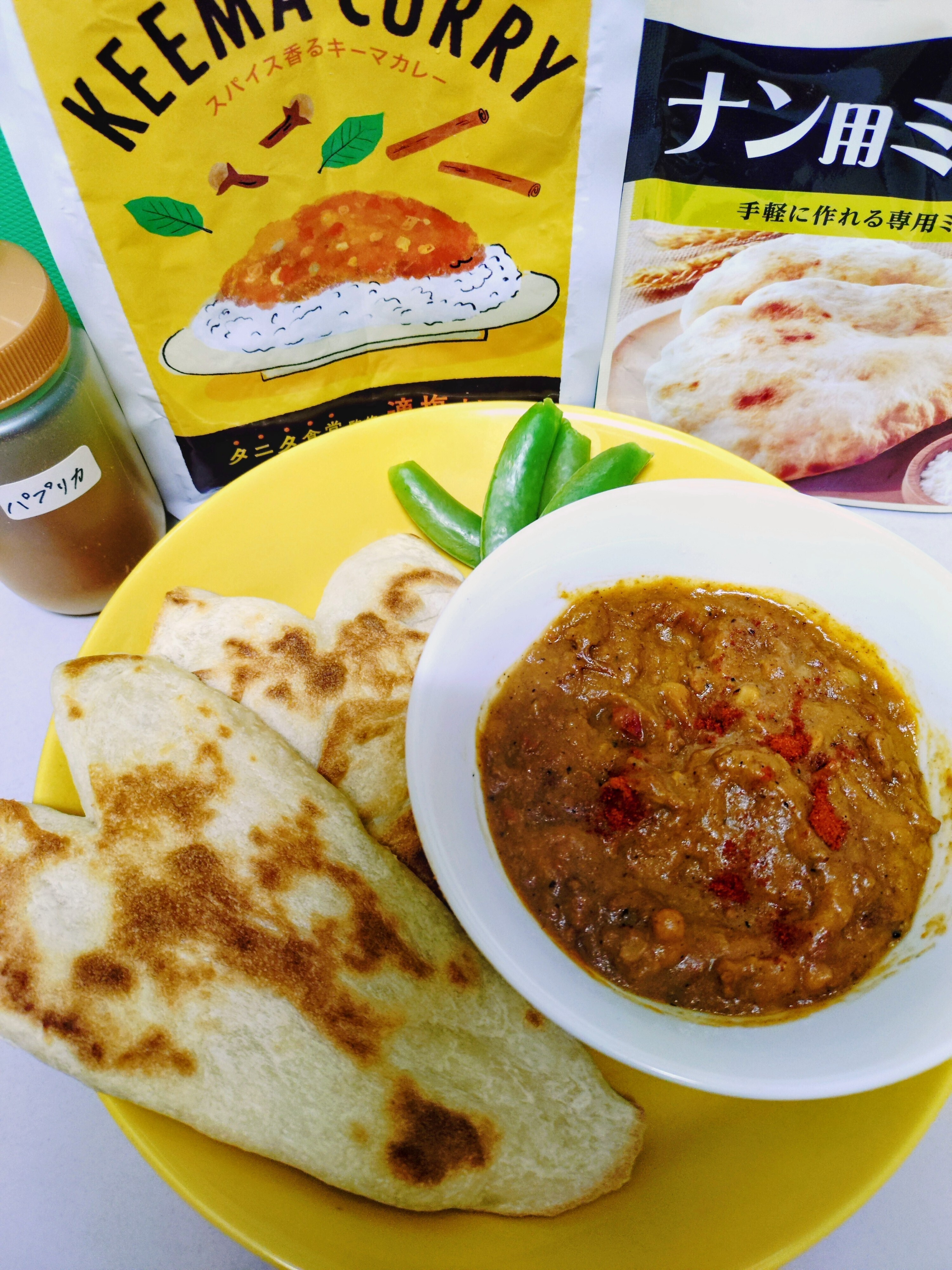 キーマカレーには彩り良く、栄養もちょっぴりプラスでパプリカパウダーもパラパラ