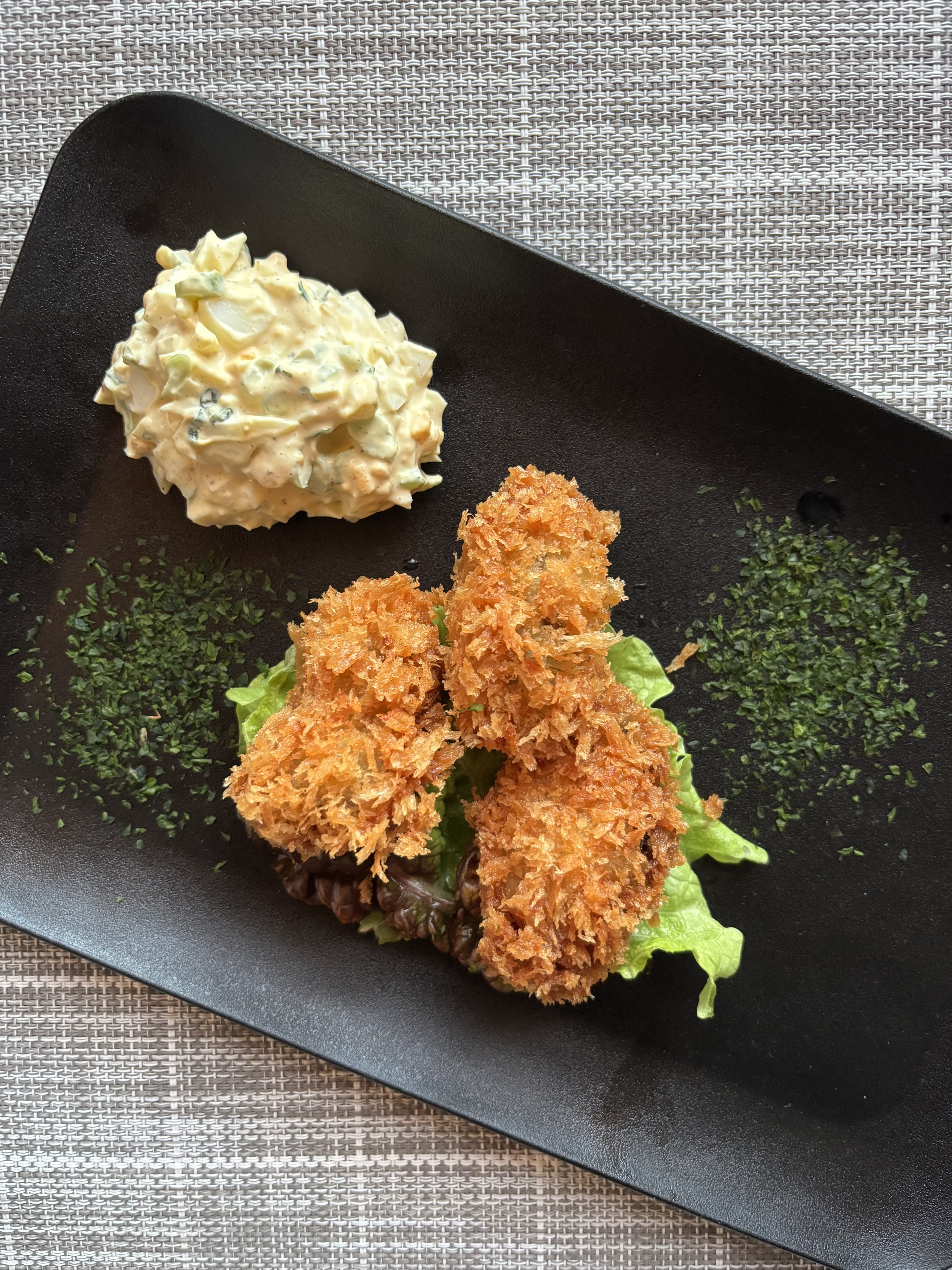 春菊の入ったタルタルソースも美味しそうです。
