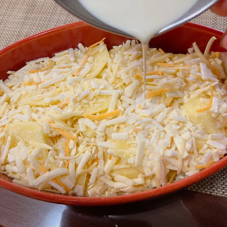 グラタンドフィノワはフランス南東部の料理で、ベシャメルソースを作らず牛乳や生クリームを流し込むタイプのグラタン。