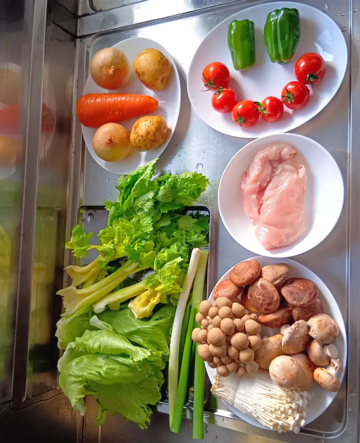材料の並べられた…あ、レシピサイトでよく見る分かりやすいやつやん!って感動しました╰(´︶`)╯ミニトマトもヘタが上で並べられて、すご〜い!