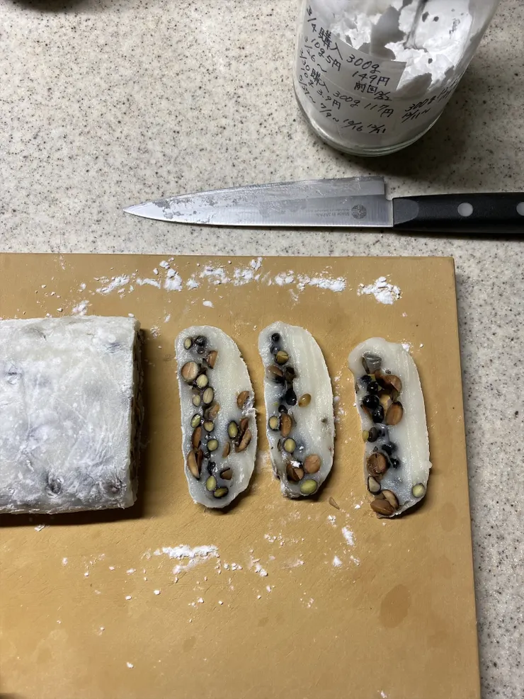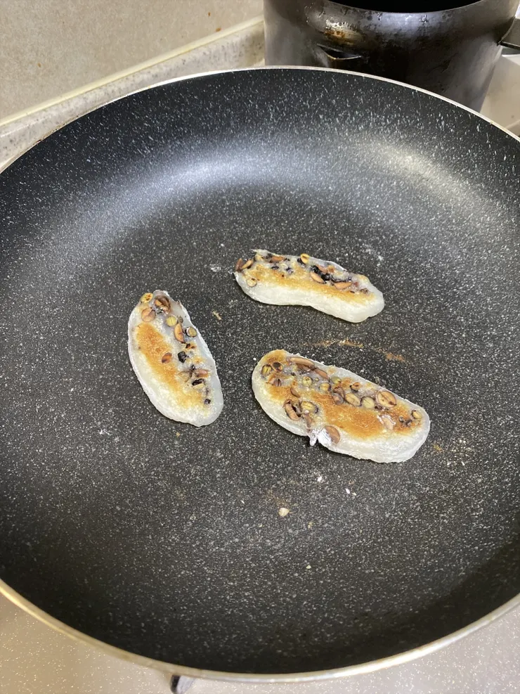 昔懐かしいナマコ型の豆もちを作り、焼いてみたらこれはもう豆もち‼️(当たり前田のクラッカーだべ)