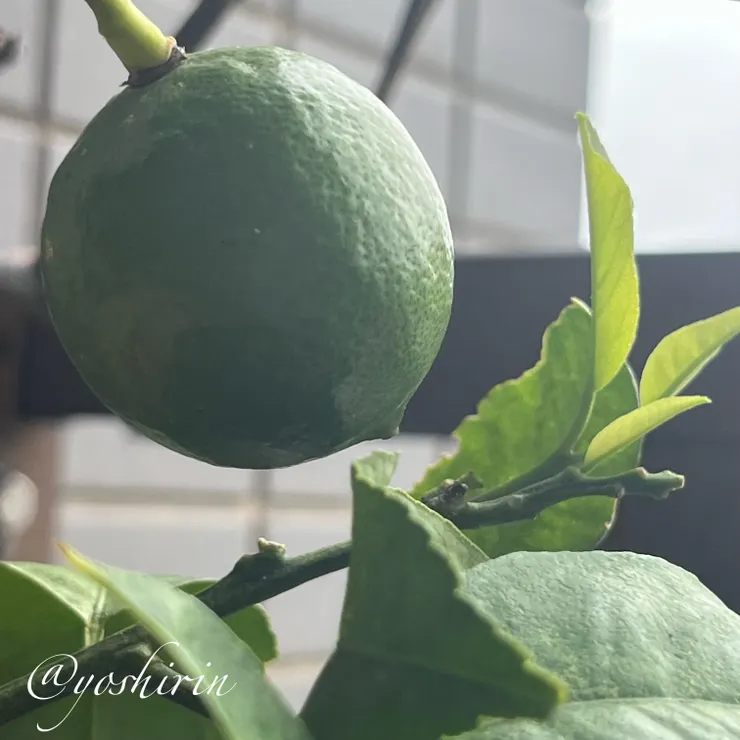 ベランダ菜園の青レモンをのせて