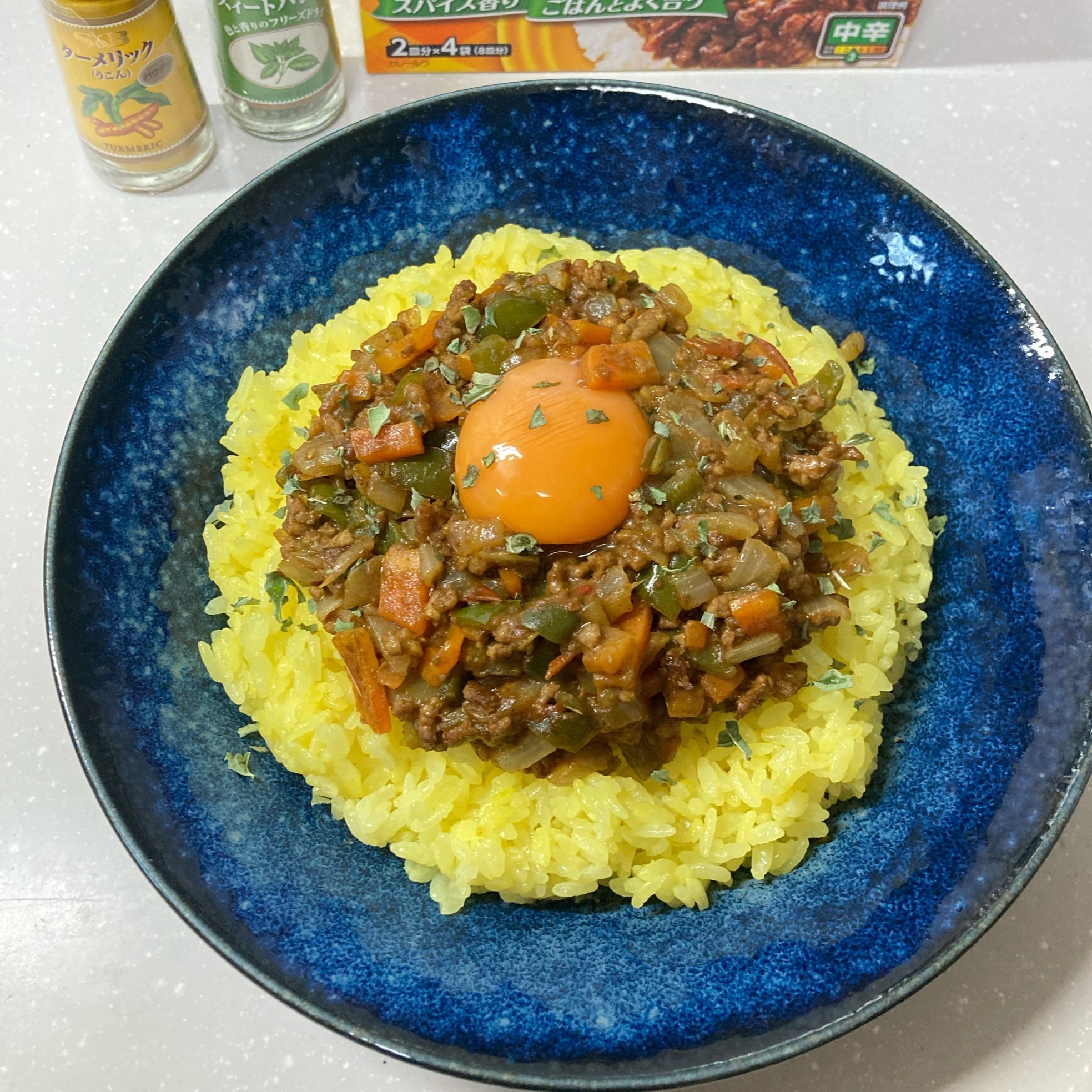 ドライキーマカレー〈中辛〉とターメリックライスを作りました。