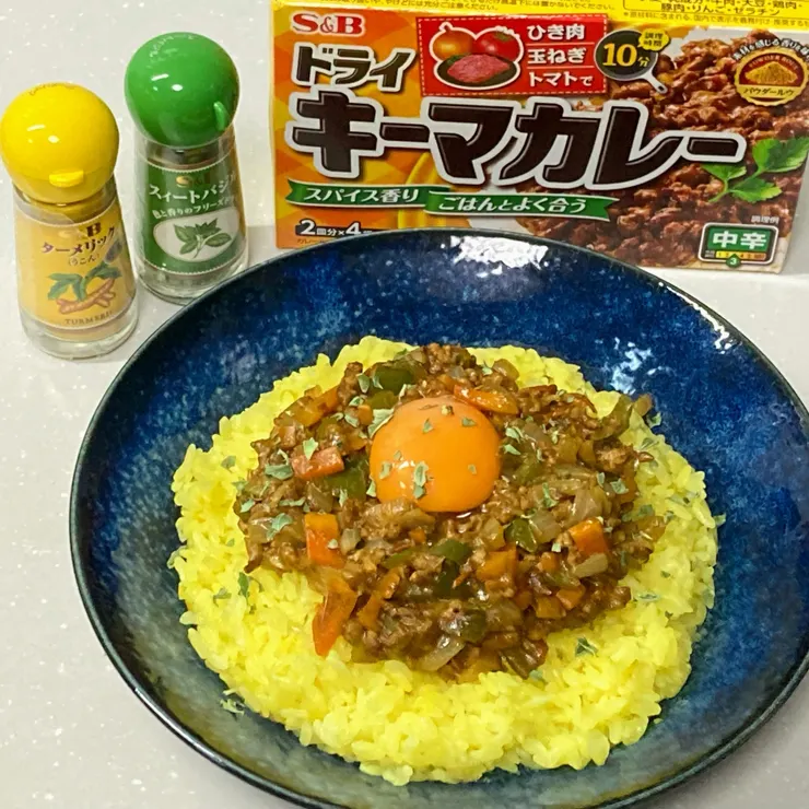 ドライキーマカレー〈中辛〉とターメリックライスを作りました。