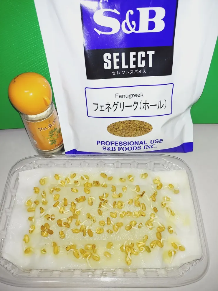 SBフェネグリークのシードを水に浸して芽が〜出て来た〜😀