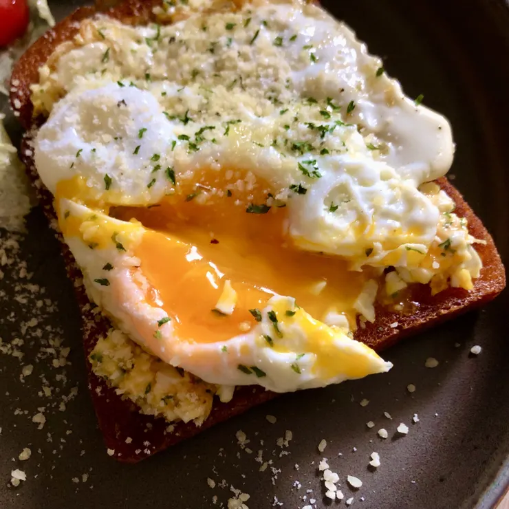 鉱山で働くあの少年パズーがシータと食べていた目玉焼きトーストのDX版です。カリカリに揚がった食パンにトロッと目玉焼きのコントラストがたまりません✨にんにくの利いたタルタルソースが食欲をかき立てます。シンプルな材料でゴージャスな気分になれる目玉焼きトーストです!