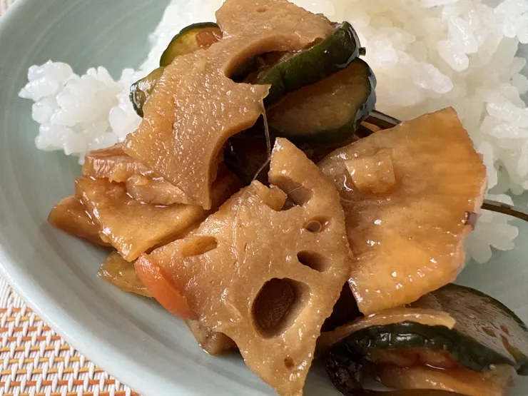 出来上がった福神漬けは、野菜がシャキシャキしていてそのまま食べてもご飯のおかずにしても美味しいです(*^_^*)ですが、やはりカレーに乗せたい!