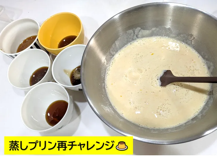 前回、蒸篭で作って失敗してしまった蒸しプリンに再チャレンジしました٩( ''ω'' )و