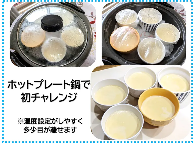 ②今度はホットプレート鍋で蒸しプリンを作ってみました。