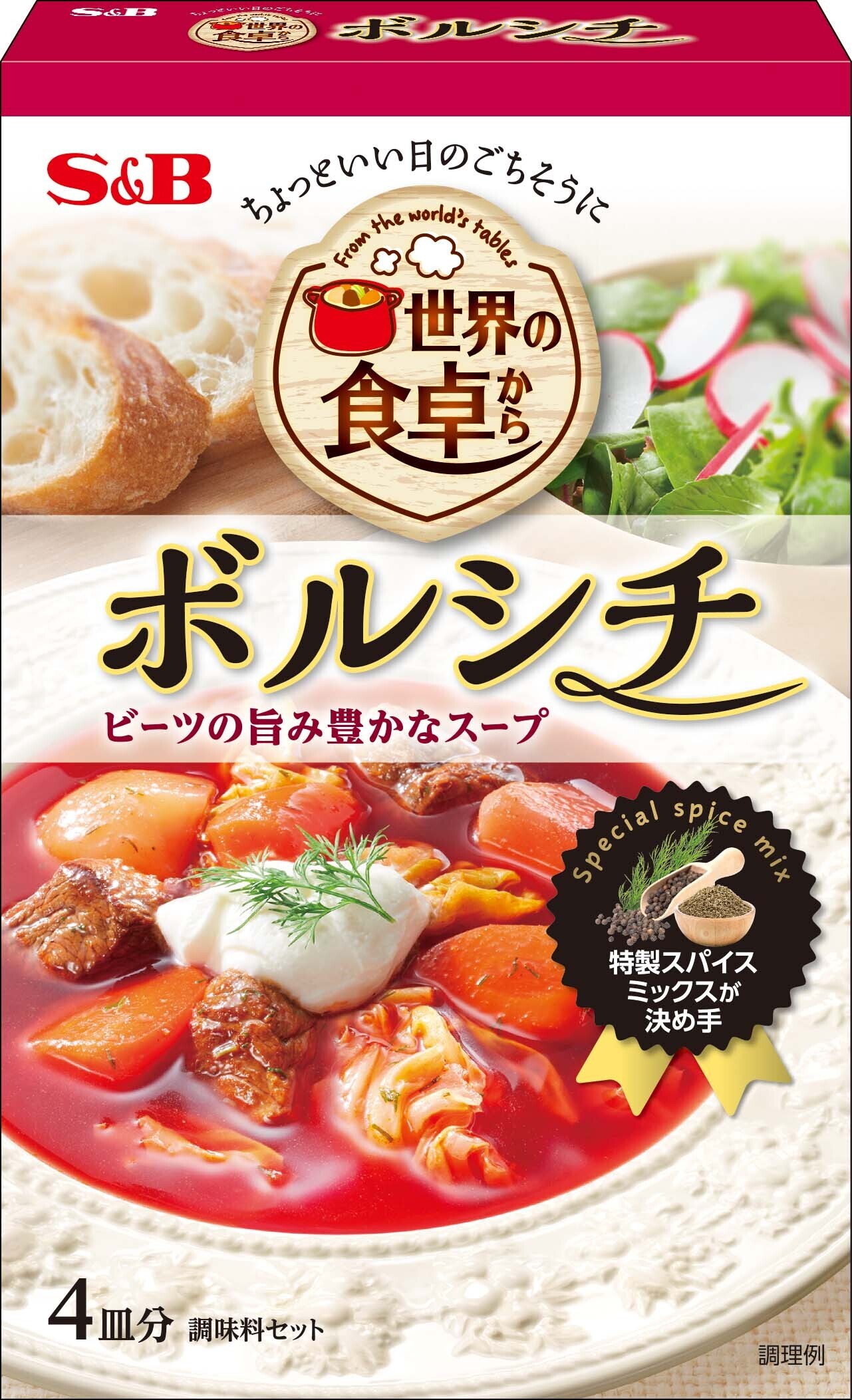 素材の旨みが詰まったソースと特製スパイスミックスで、手軽に本格的な味わいを楽しめます。ビーツの旨みと香りが活きた「ボルシチ」、サワークリームと牛肉のコクが特徴の「ビーフストロガノフ」、海老や魚介ブイヨンの旨みに白ワインやアンチョビで風味を高めた「ブイヤベース」など、個性的なメニューを簡単に手作りしたい方におすすめです。