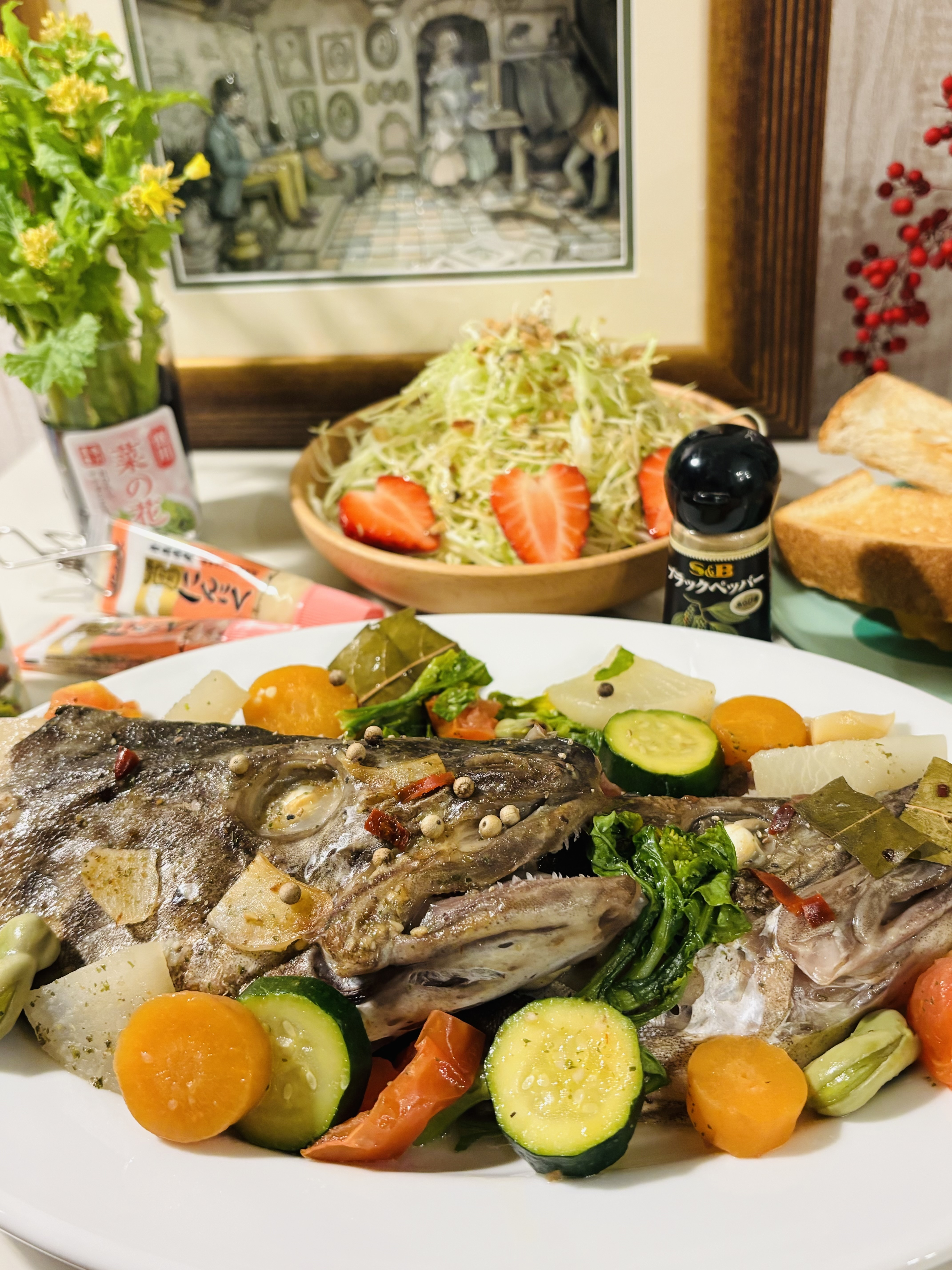 たらの頭が手に入ったので、今日はS&Bさんのスパイス&調味料を贅沢に使ってアクアパッツァに。