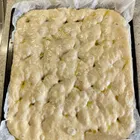 水で指先を濡らして全面に穴を開けてオリーブオイルをぶちまけてスプーンの背で伸ばす。オーブン180℃で17~8分焼く。