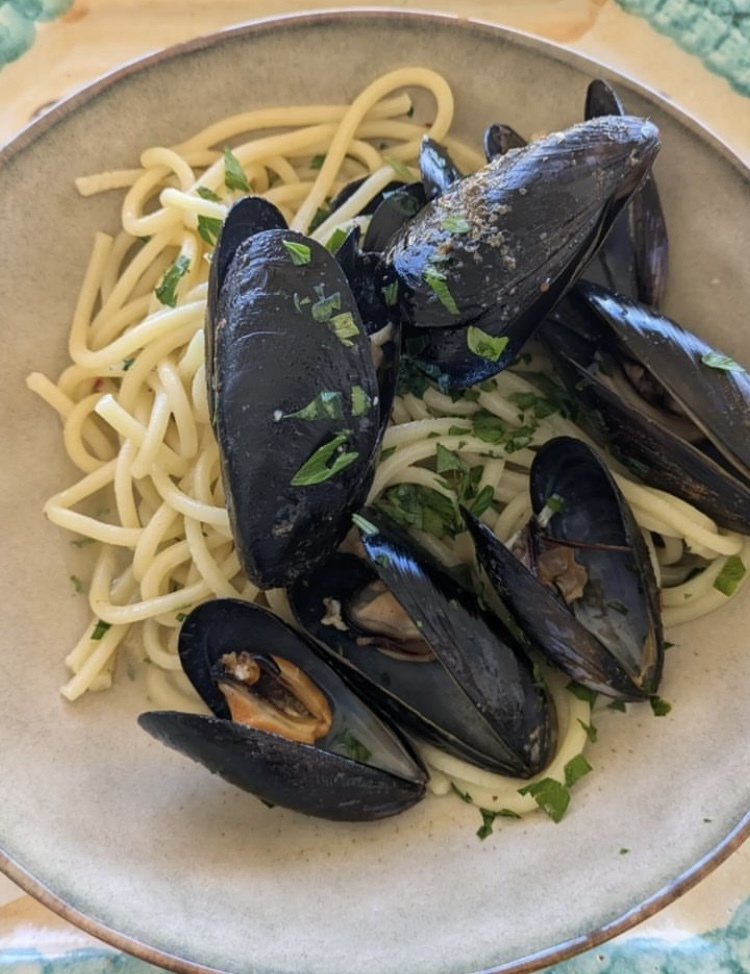 白ワインとイタリアンパセリでシンプルに作りました。ボッタルガ、乗せてもよかったかなぁ。