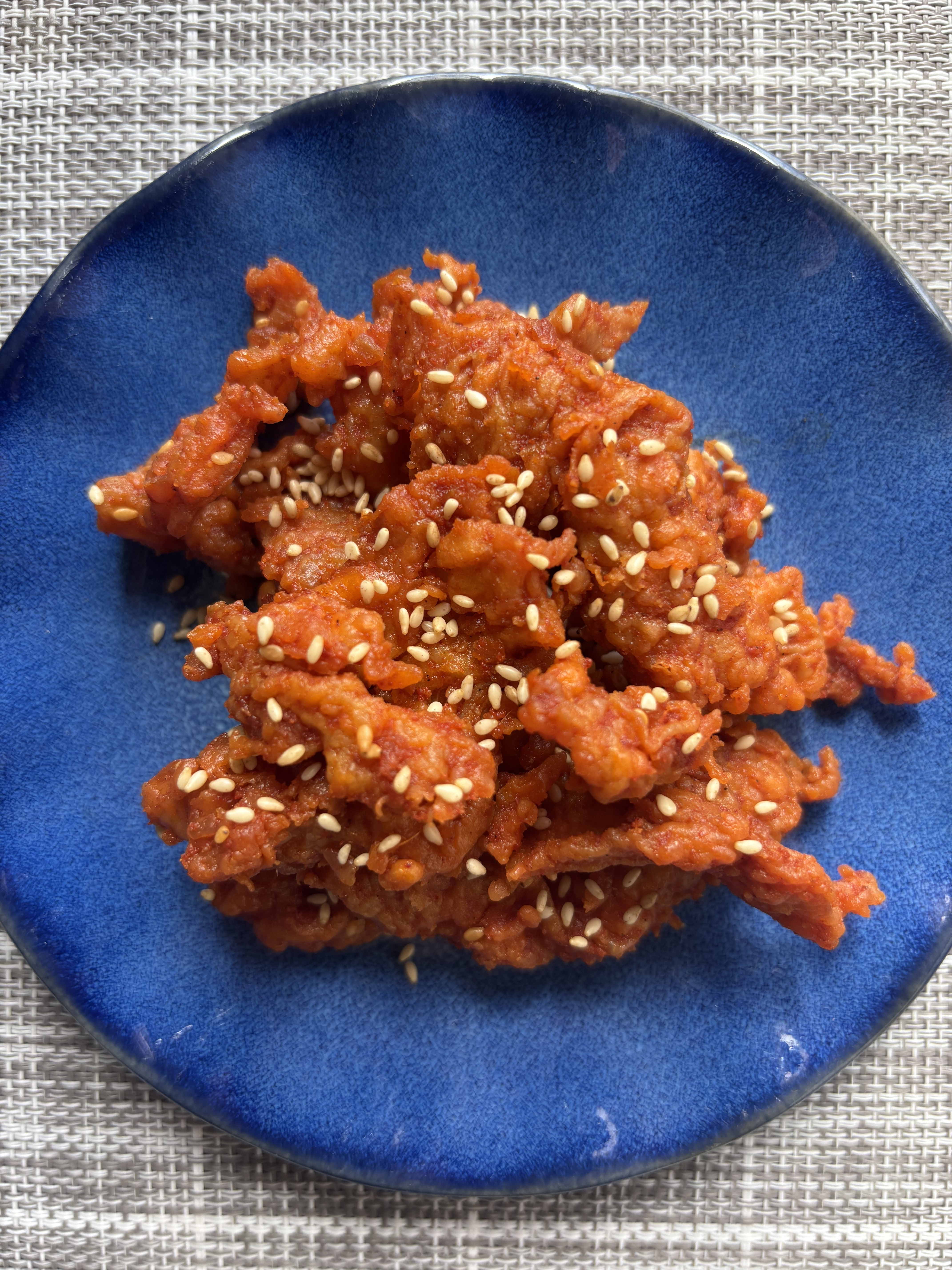 トップ > フォトレポート > おすすめレシピ > 鶏皮のコチジャン&唐辛子ピリ辛揚げ tochi 2026/03/04 08:26 鶏皮のコチジャン&唐辛子ピリ辛揚げ 鶏皮に沸騰したお湯をかけ、ペーパーで押さえて水気を取る。 食べやすい大きさに切って、コチジャン、唐辛子をお好みの辛さで和える。 片栗粉をまぶして揚げる。 油を切って盛り付けたら白胡麻を振る。 鶏皮にコチジャンと唐辛子でピラ辛にした辛くて美味しいおつまみ。 いいね 共有する 共有する X facebook LINE リンクをコピー コメントする 3 件の返信 (新着順) ミュートしたユーザーの投稿です。 投稿を表示 みきママ 2026/03/04 18:39 お酒がすすみそう。 美味しそうですね いいね 返信する ミュートしたユーザーの投稿です。 投稿を表示 tochi 2026/03/10 07:43 みきママ おはようございます。 進みますし、鶏皮好きに是非お勧めの一品です^_^ いいね 返信する ミュートしたユーザーの投稿です。 投稿を表示 ざくちゃん 2026/03/04 14:35 これは🍺片手に食べたいです😍 いいね 返信する ミュートしたユーザーの投稿です。 投稿を表示 tochi 2026/03/10 07:44 ざくちゃん おはようございます。 絶対そうですね🍺 カリカリではないですが、鶏皮好きにはたまらない一品です^_^ いいね 返信する ミュートしたユーザーの投稿です。 投稿を表示 SPICE&HERB COMMUNITY事務局 2026/03/04 10:38 tochiさん、こんにちは! これはクセになるピリ辛おつまみですね👀✨ とっても美味しそうです♪ いいね 返信する ミュートしたユーザーの投稿です。 投稿を表示 tochi 2026/03/10 07:45 SPICE&HERB COMMUNITY事務局 ありがとうございます。 カリカリではなく、絶妙な食感と辛味が味わえました^_^ いいね 返信する