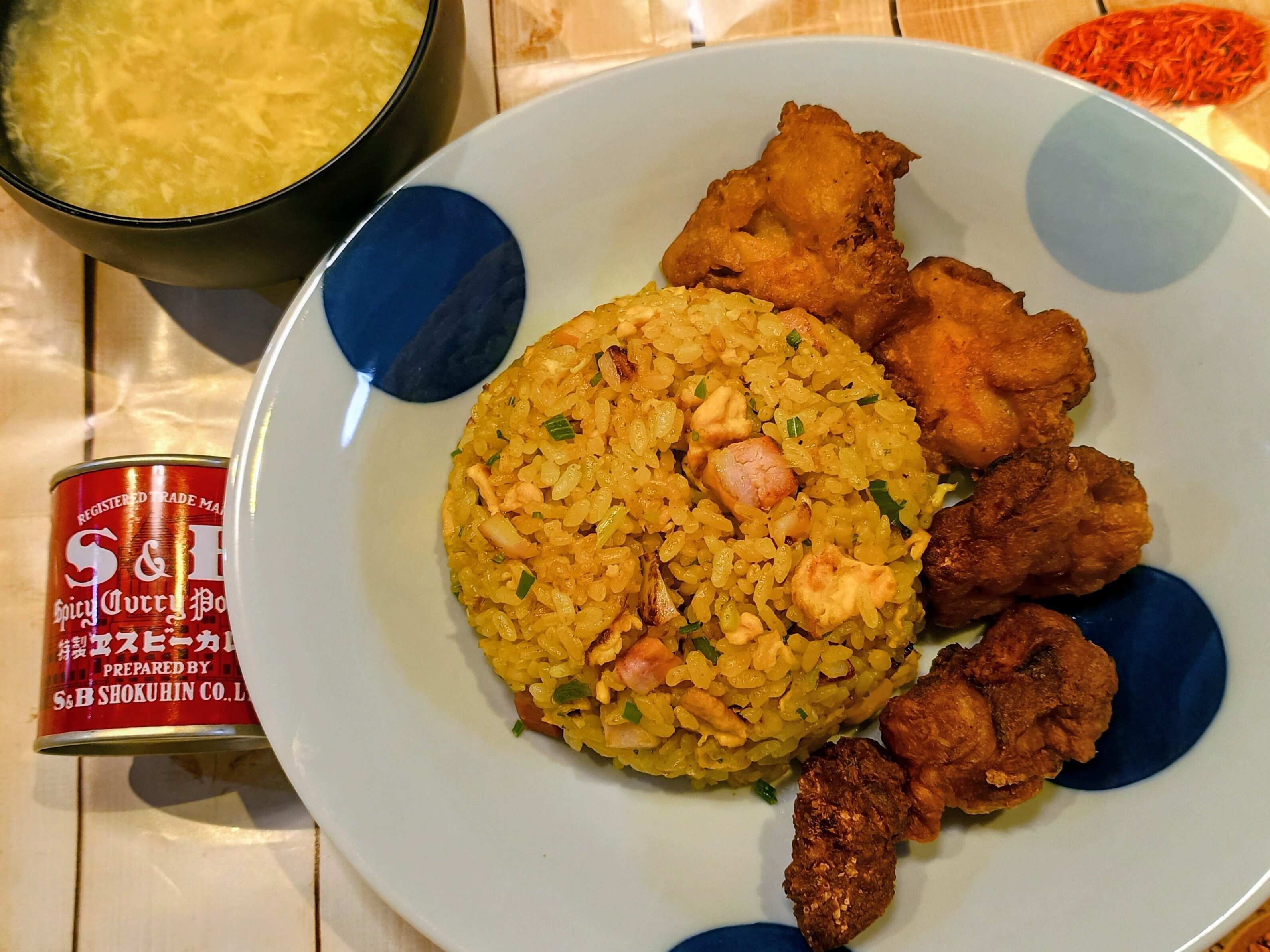 投稿を表示カレー味のチャーハン、スパイシーで美味しそう! 食べ始めたら止まらなくなりそうですね。
