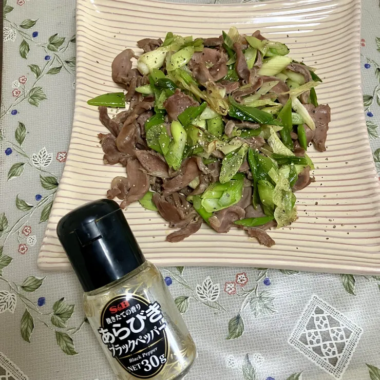 砂肝と長ネギのブラックペッパー炒め