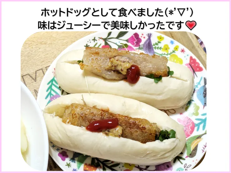 ホットドッグで食べたのですが、いい意味で肉にくしくて&ジューシーでした(*'▽')