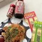 ソースとケチャップ、チリパウダーとパセリをかけて召し上がれ♫スパイスは好みでなんでもいいかなと思います。